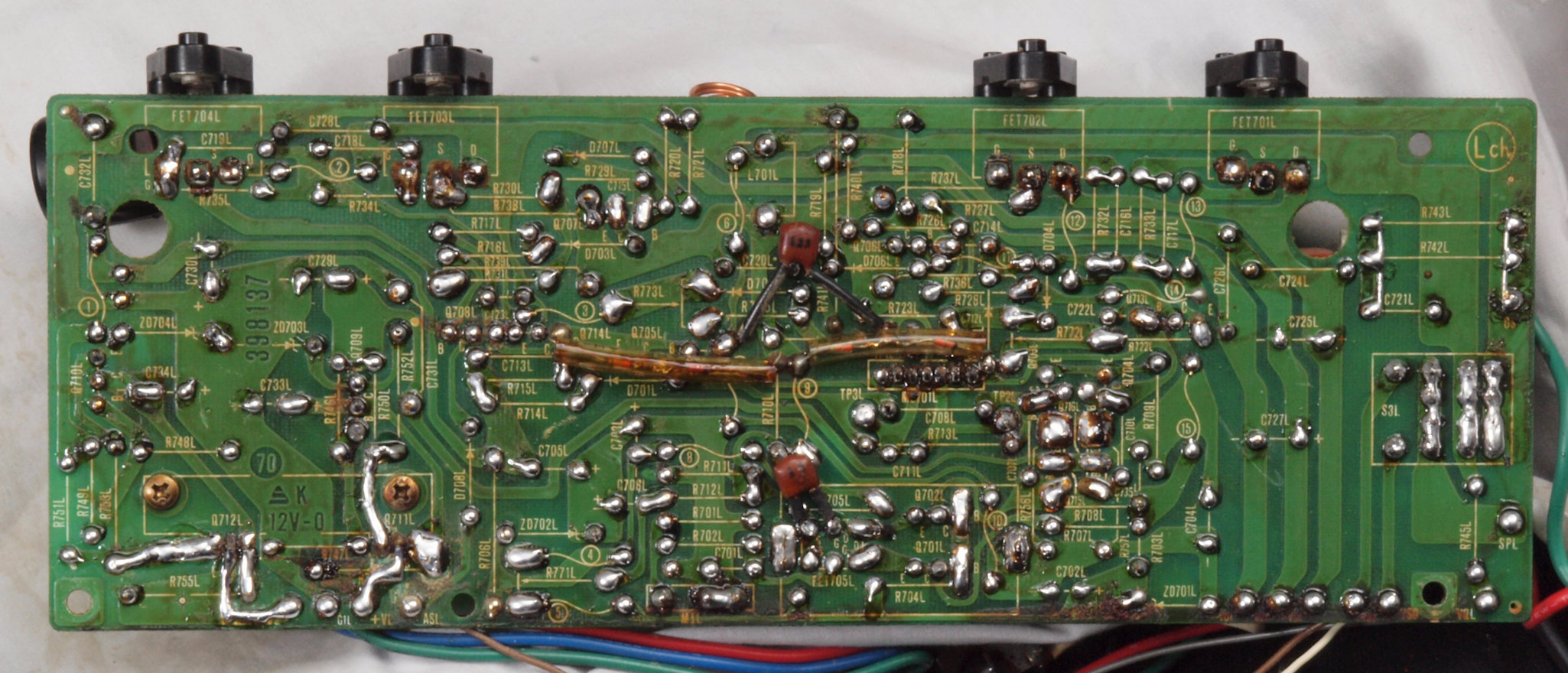 | C15. 修理(半田補正)後 R側ドライブ基板裏 半田を全部やり直す。 普通はこれで完成。 |