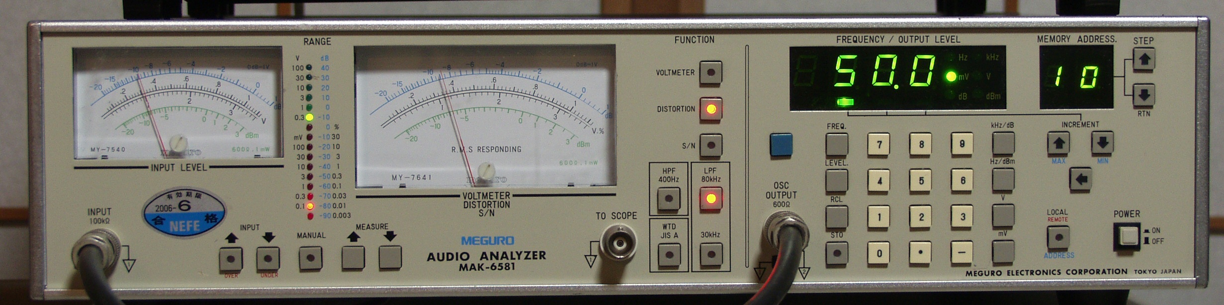 | A. 1台目=2006年6月 YAHOOオークションで\39,000円で購入。2006年校正品でしたが、 出力レベル不良。 2台目=2007年5月 YAHOOオークションで\31,150円で購入。 動作品なので清掃のみ。 B. 原因。 経年変化。 D. 使用部品。 S. MEGURO MAK−6581 仕様(マニアル・カタログより) |