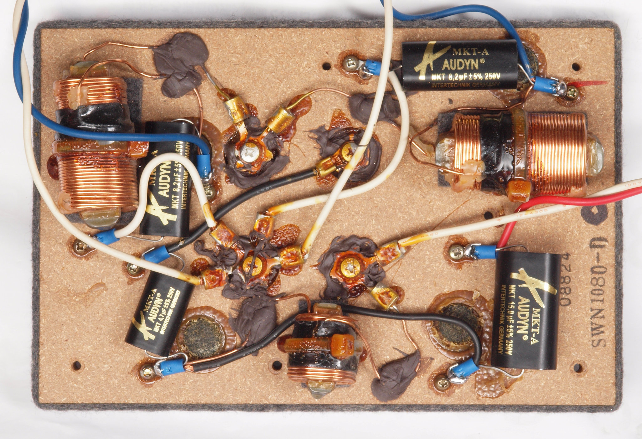 | C12. 修理中 ネットワーク1裏。 フイルムコンデンサー交換、配線を固定する。 | ||||||||||||||||||||