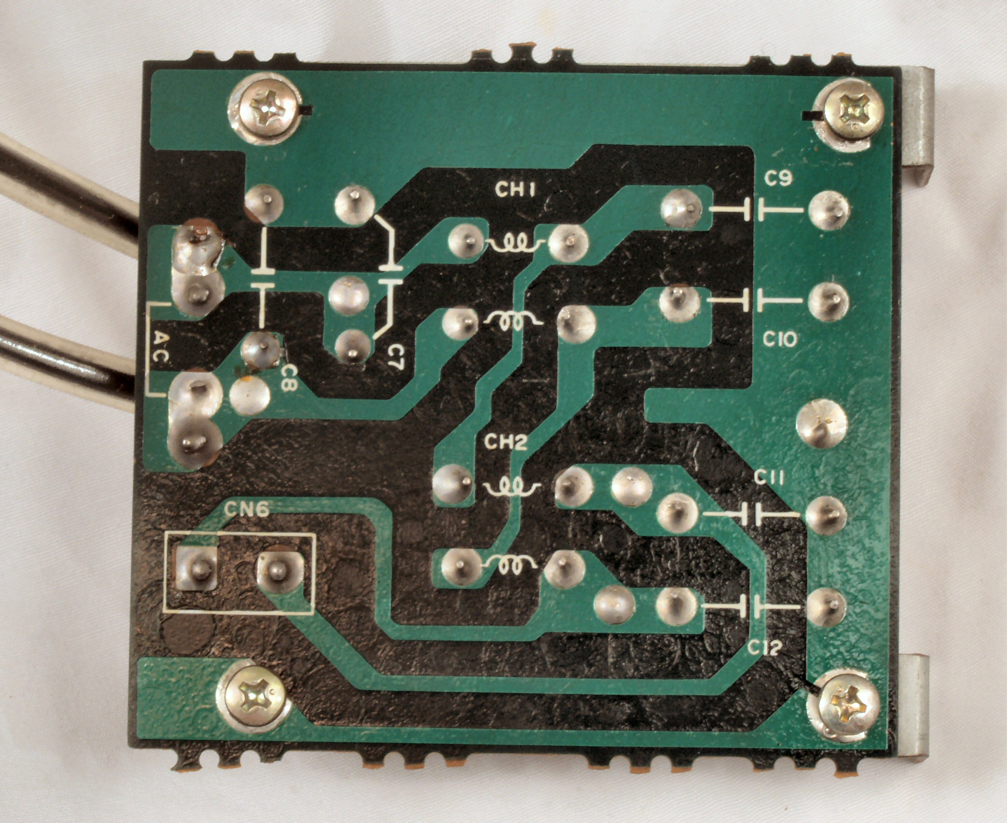 | C44.完成電源ラインフイルター基板。余分なフラックスを落として、コート液を塗る。 | ||||||||||||||||||||||||||||||||||||||