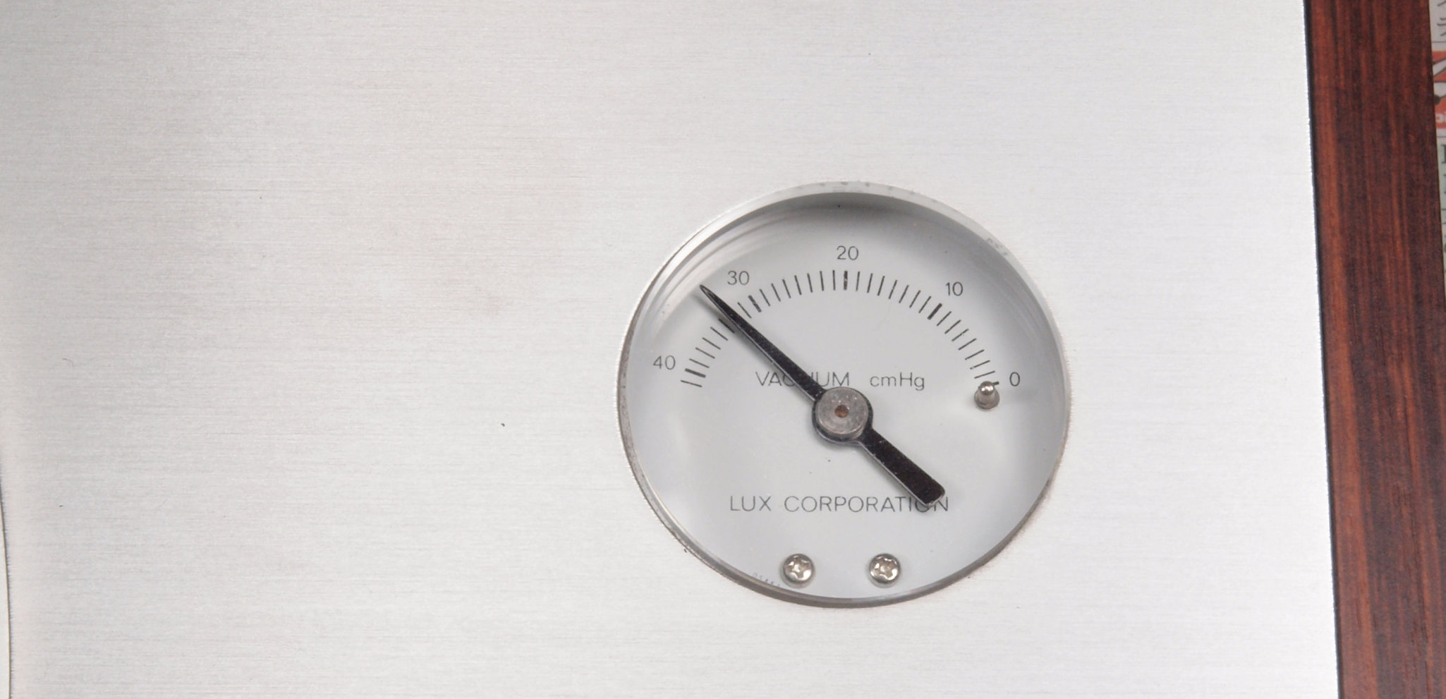 | E22. 吸着開始時のバキュームメータ。搭載したレコードはパイオニヤのLD。 | ||||||||||||||||||||||||||||||||||||||||||||||||||||||||||