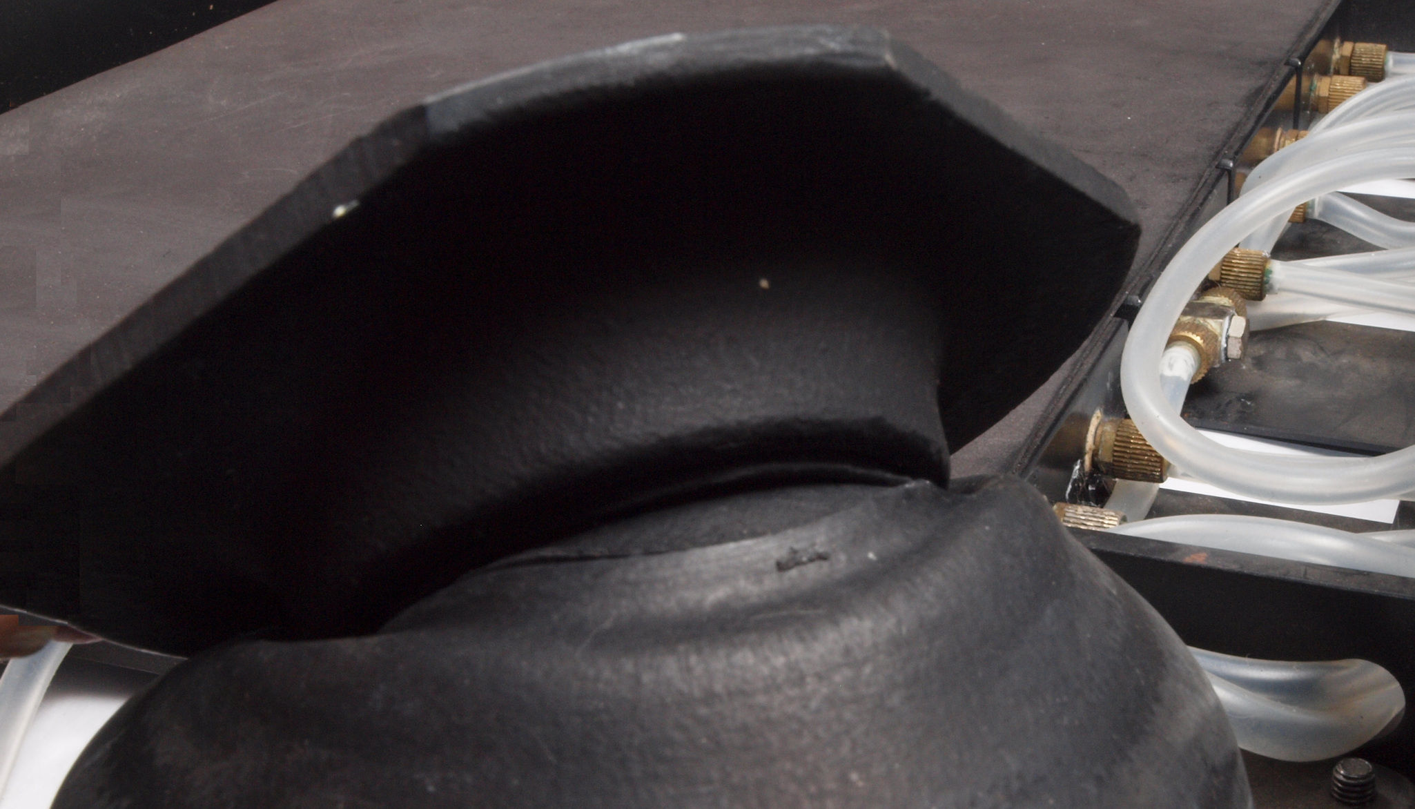 | A. 修理前の状況。 画像をクリックすると、大きく(横幅2050ドット)表示されます。 A1. 点検中 左前のチャンバーゴム上に割れがある。 |