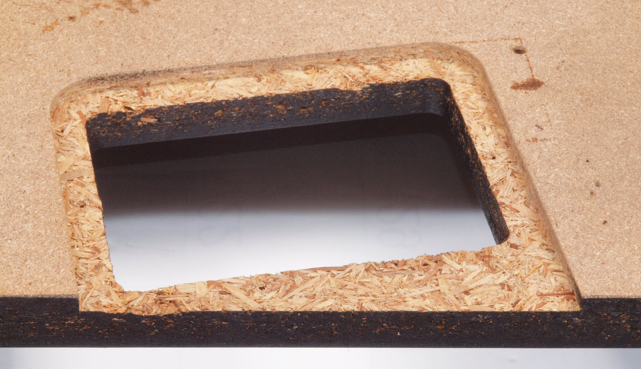 W25. 修理中 操作部取付穴。 圧縮材にボンドを染みこませる。