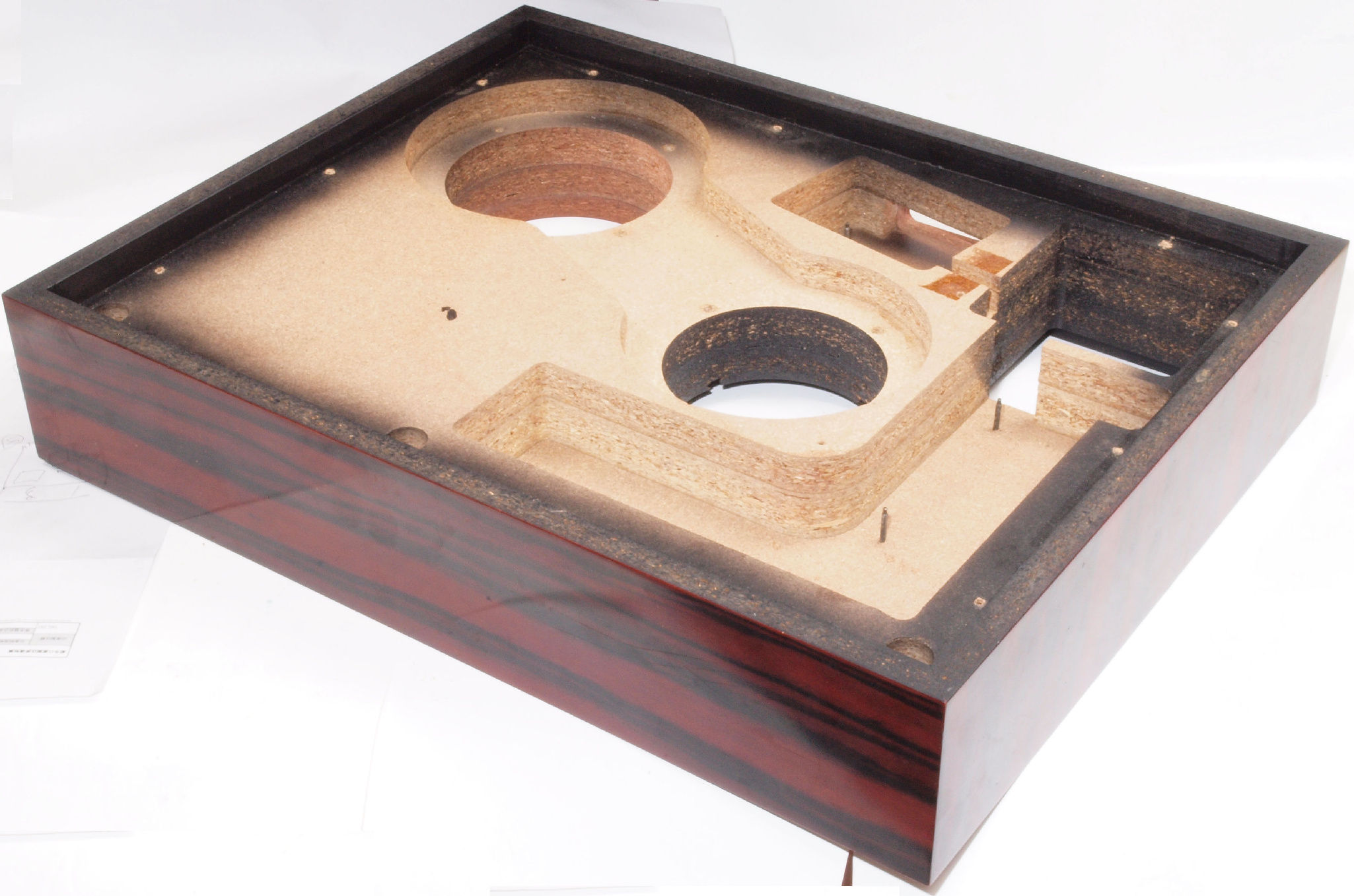 W18. 修理中 モーター取付穴、タンテーブル軸受取付穴。 圧縮材にボンドを染みこませる。