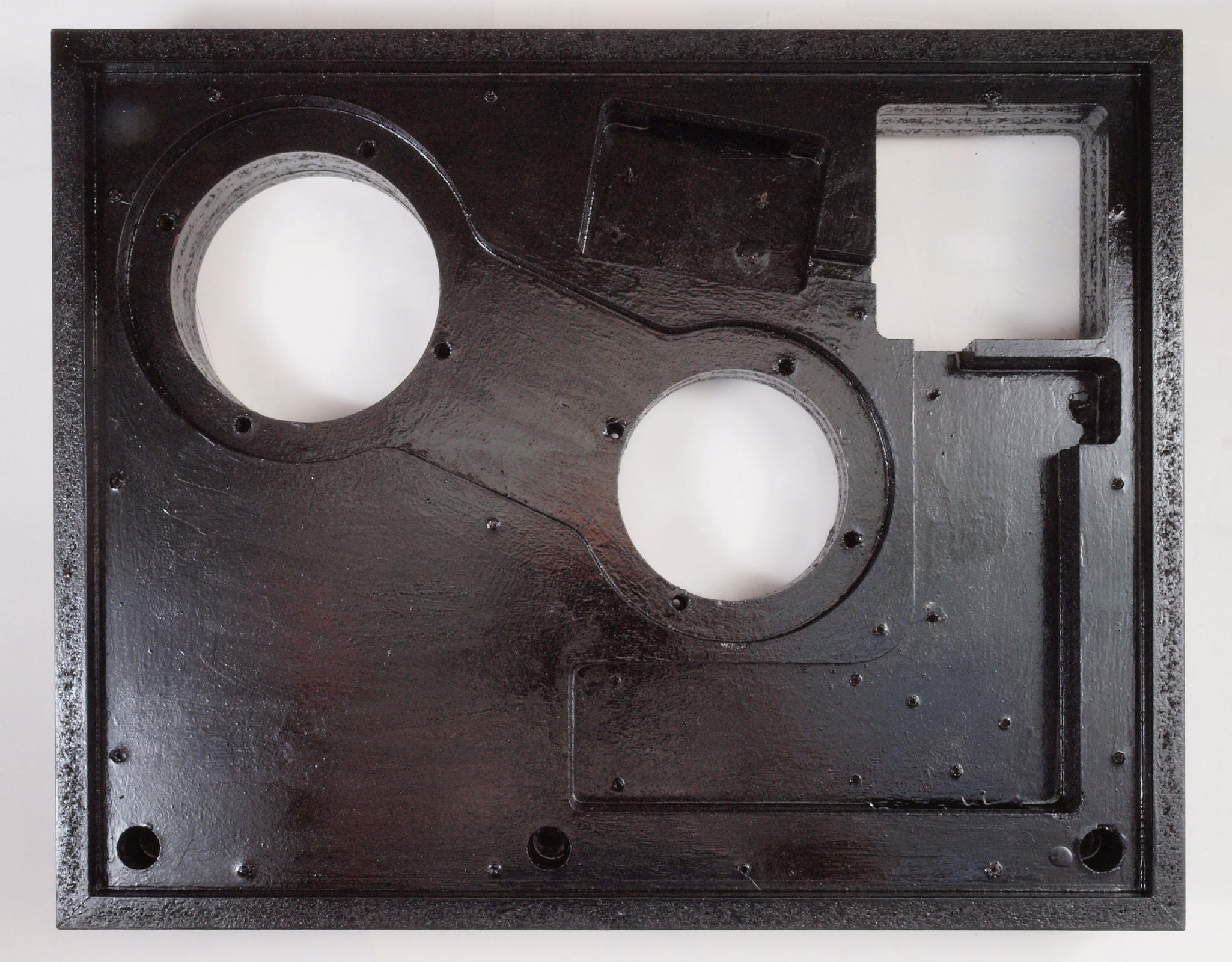 W23. 修理後 モーター取付穴、タンテーブル軸受取付穴、反対側。 更にペンキを塗る。