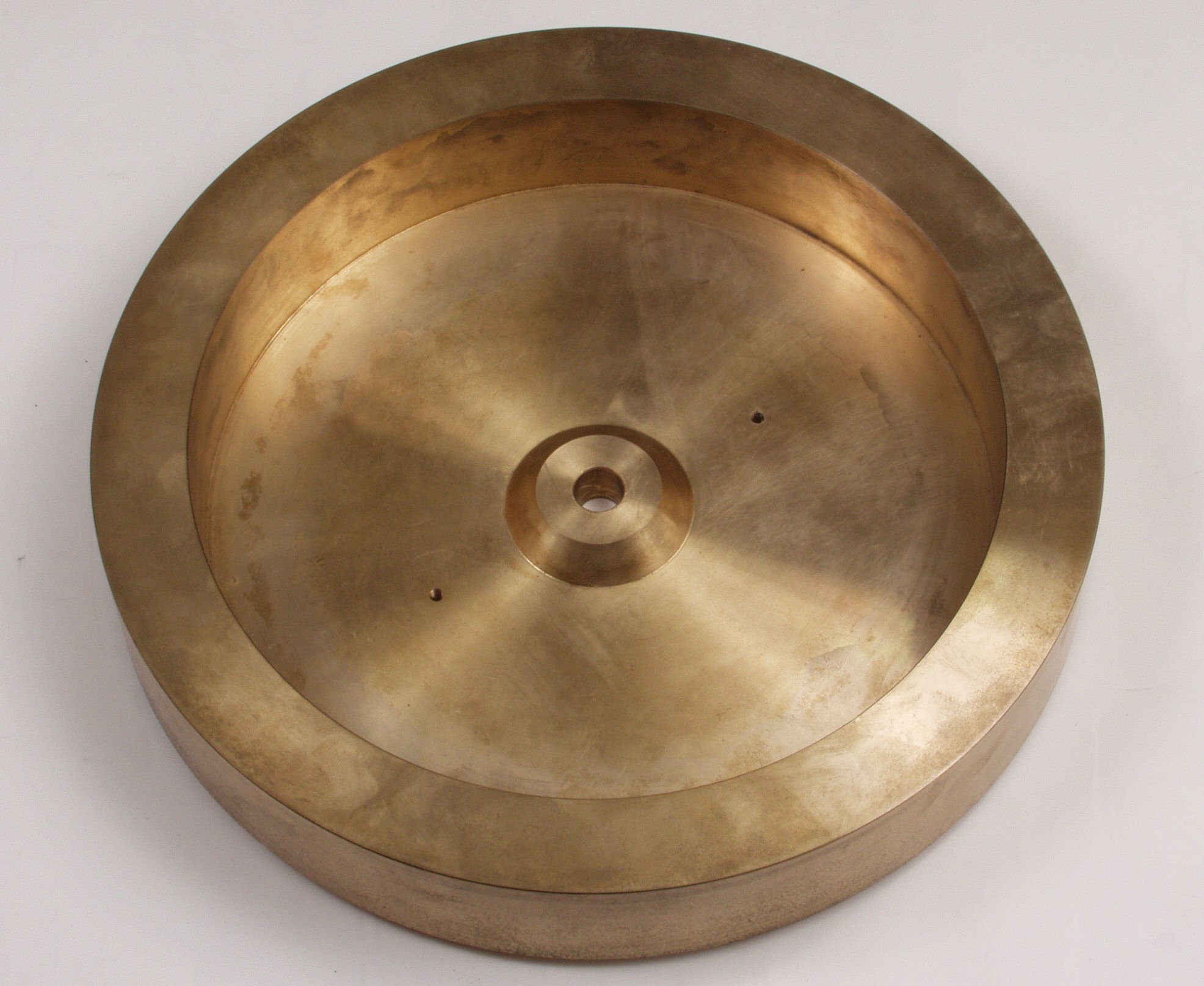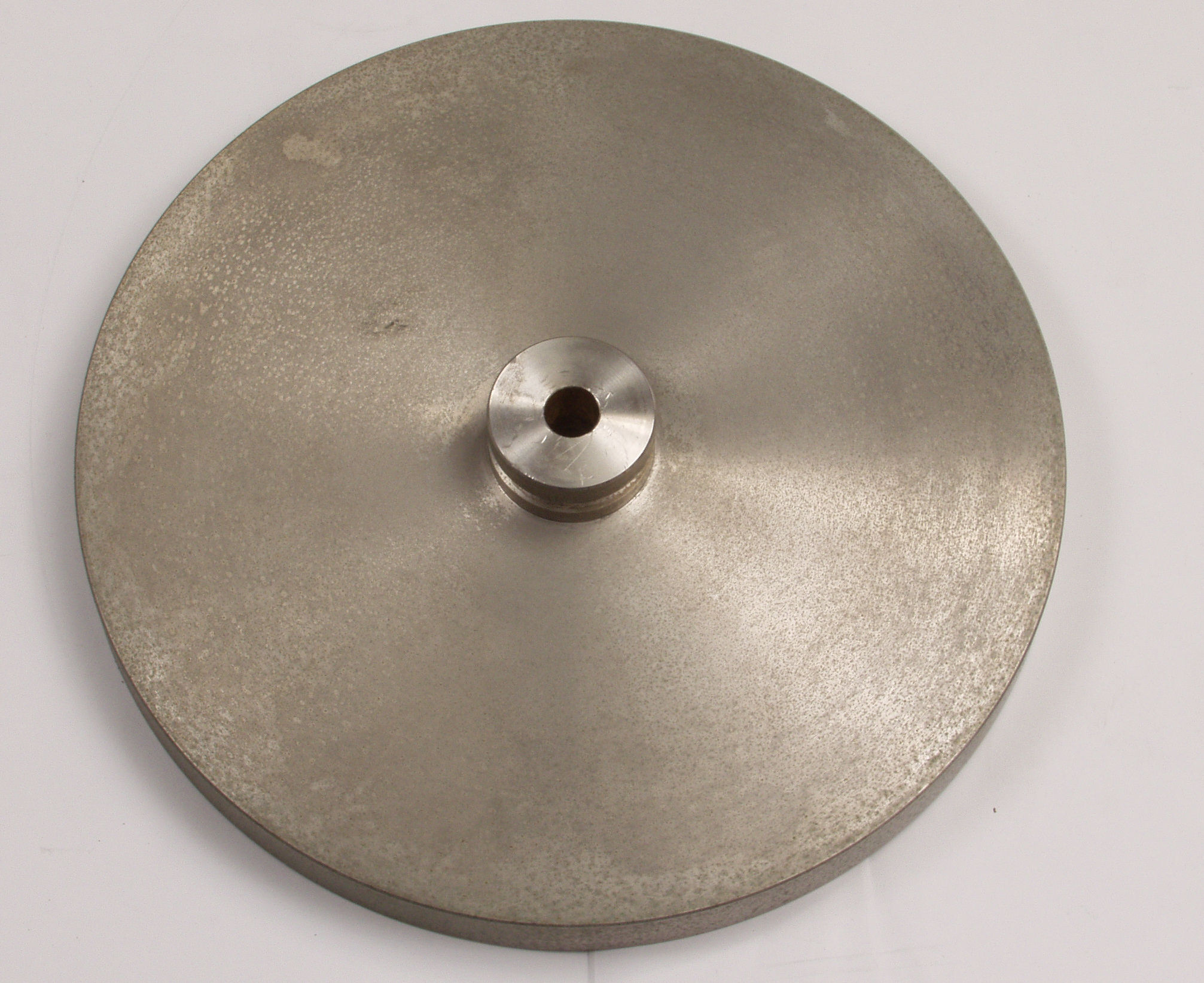 J11. 修理(研磨・清掃)後、 ターンテーブル、右半分終了。 キズが深く、余り綺麗にならない。