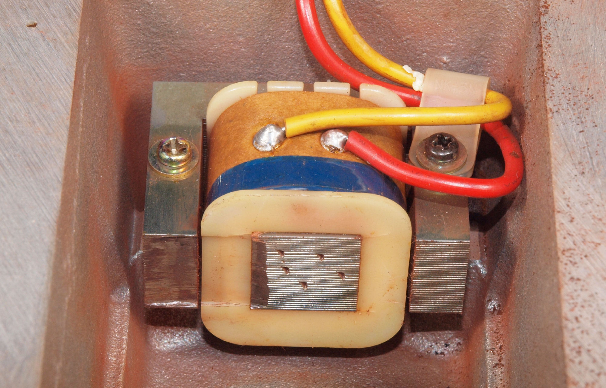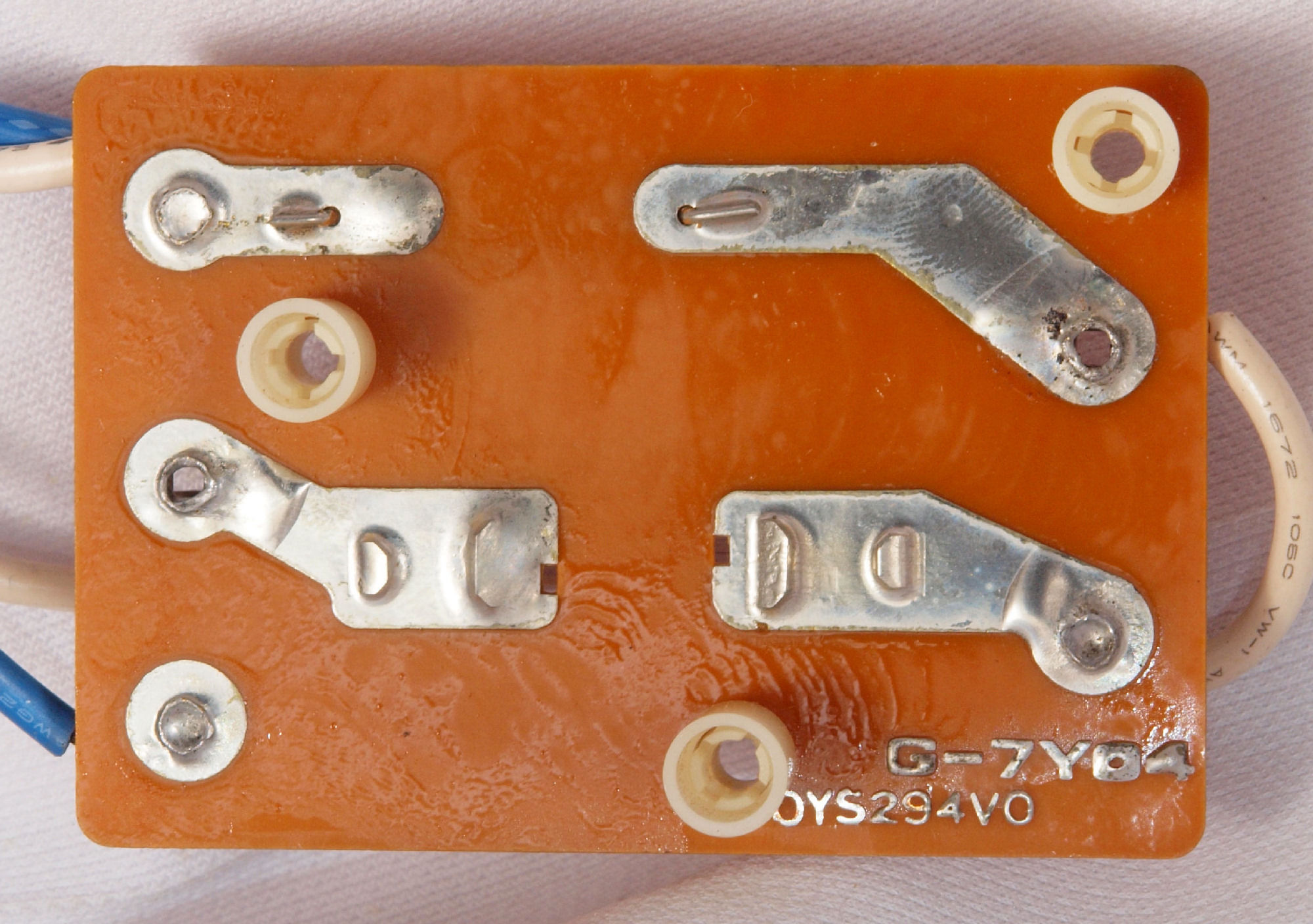 C52. 修理後 圧縮板にボンドを塗って固めている、フューズ取付圧縮板。