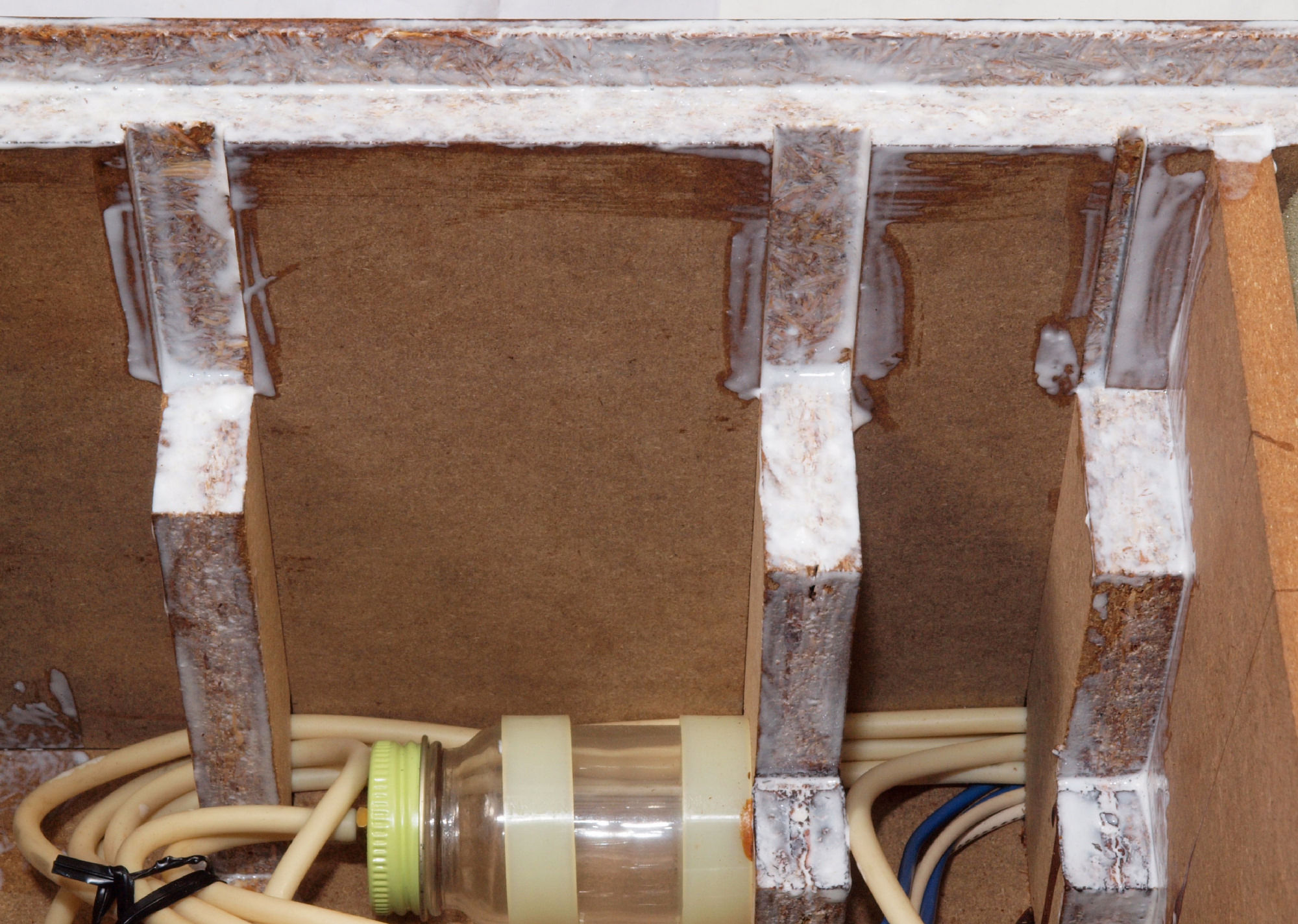 C74. 修理中 下蓋(底板)右横側、ボンドを染みこませる。