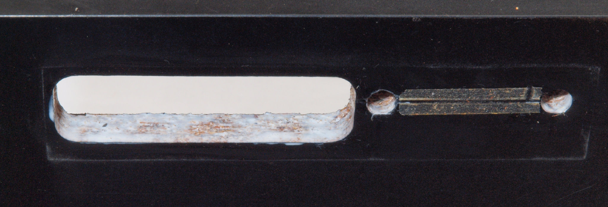 | C45. 修理中 圧縮板にボンドを塗って固めている、左側。 | ||||||||||||