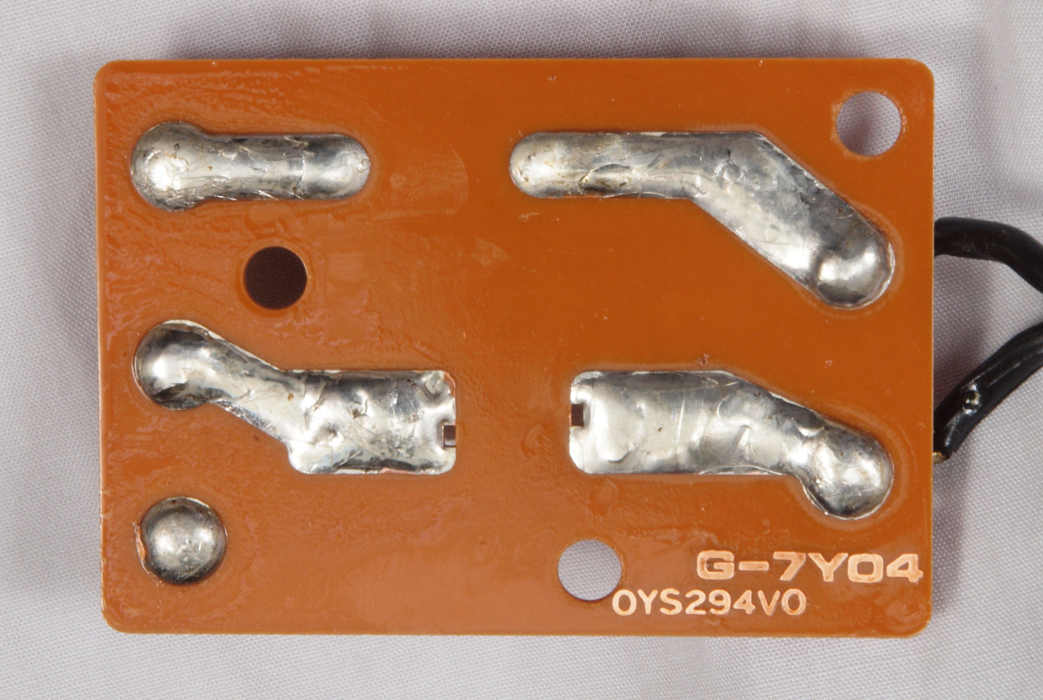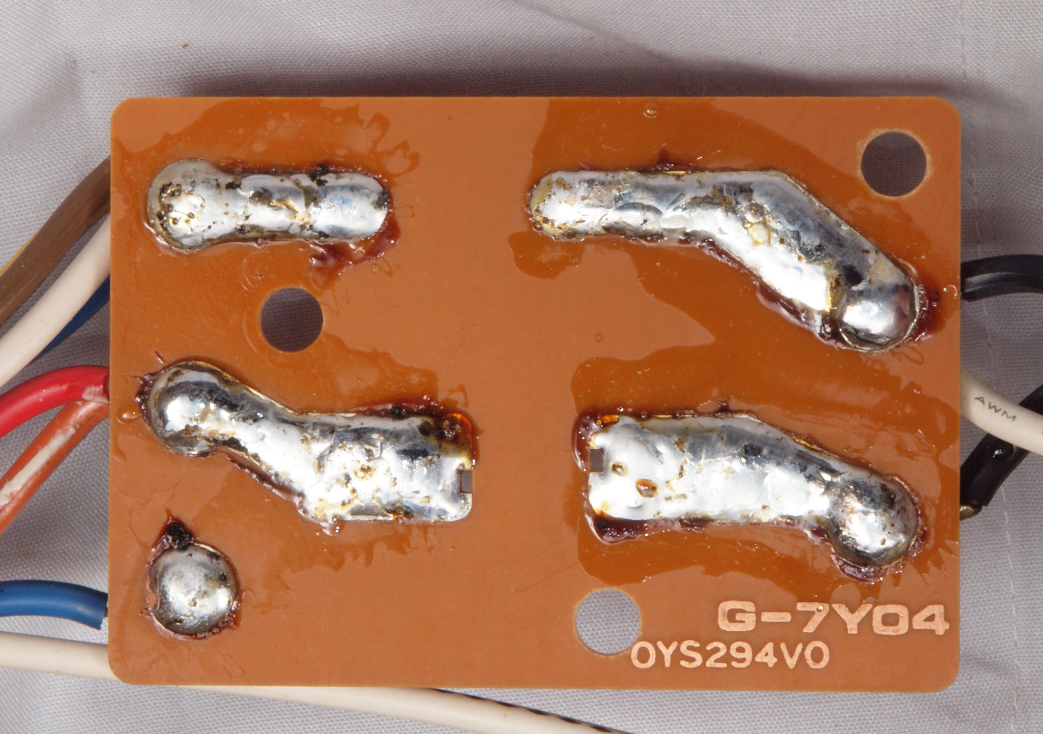 C72. 修理中 ヒューズ取付圧縮板表。 圧縮板にボンドを塗って固めている、ヒューズ取付圧縮板表。 |