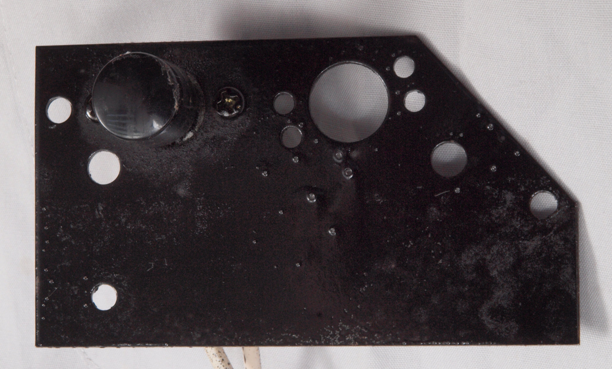 | CD4. 修理(塗装)後 電源SW・LED取付金具裏。塗装する、SWのボタンが接着してあるので、取り付けたままで塗装する。 | ||||||||||||