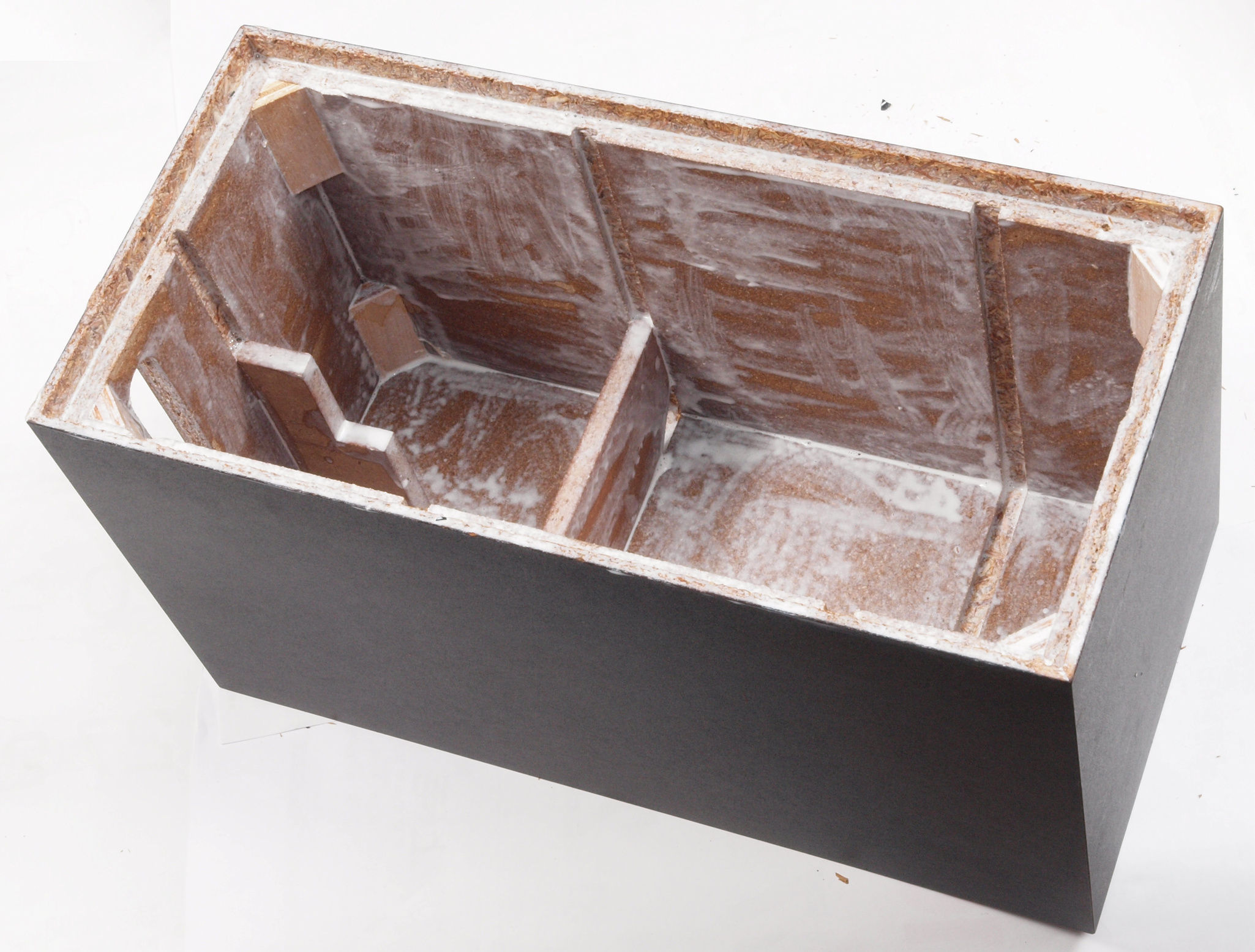 | C95. 修理中 ポンプケース木箱後左。圧縮板にボンドを塗って固める。 |