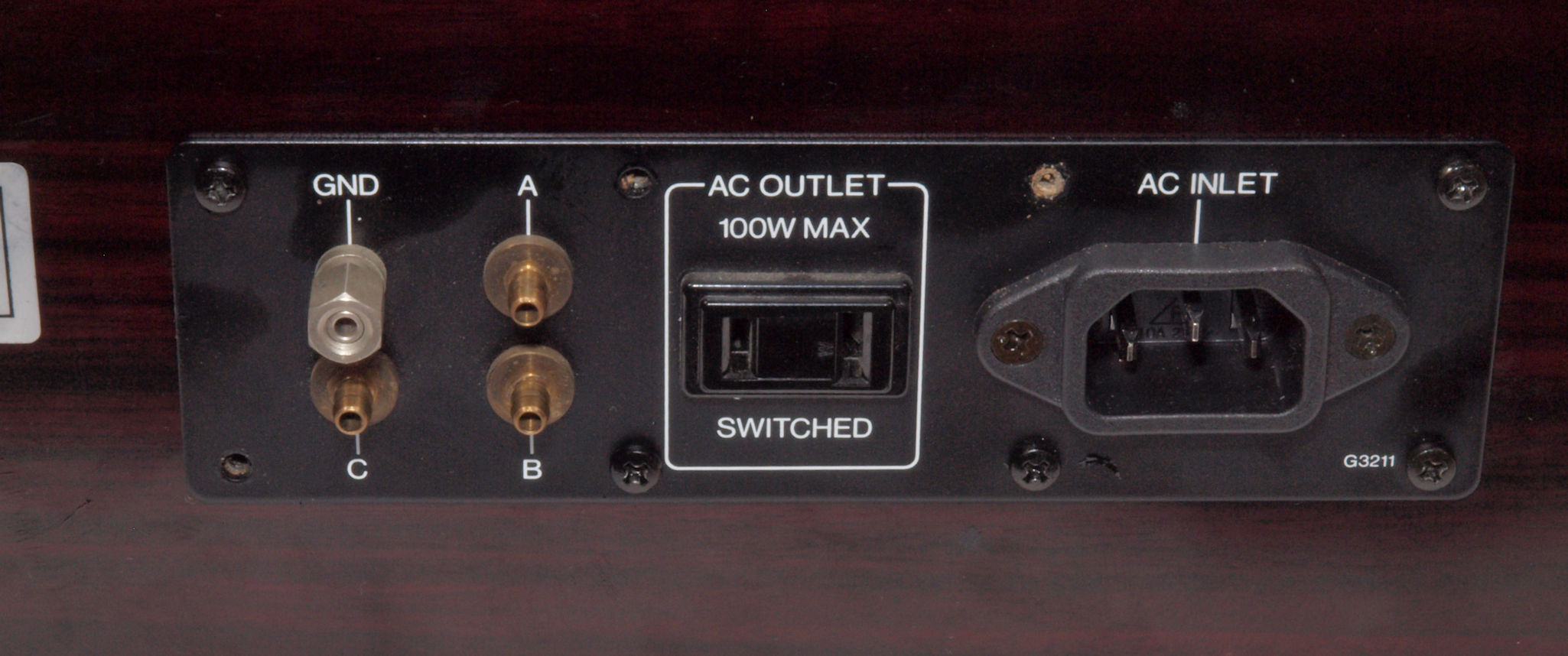 | A72. 点検中 電源コンセントパネル。 3Pインレットに交換可能。FURUTECH製FURUTECH FI-10(R) ロジウムメッキ。 |