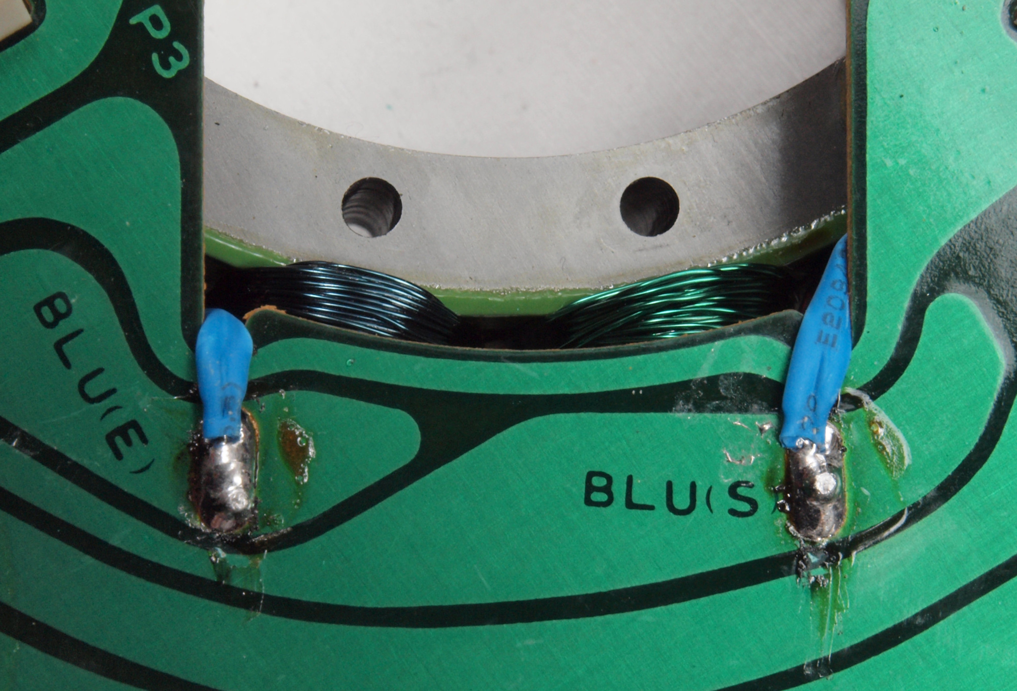 M41. 修理中、 アマチュア(回転子)基盤裏巻線半田、引き出し線が絶縁していない!(BLUE巻線)