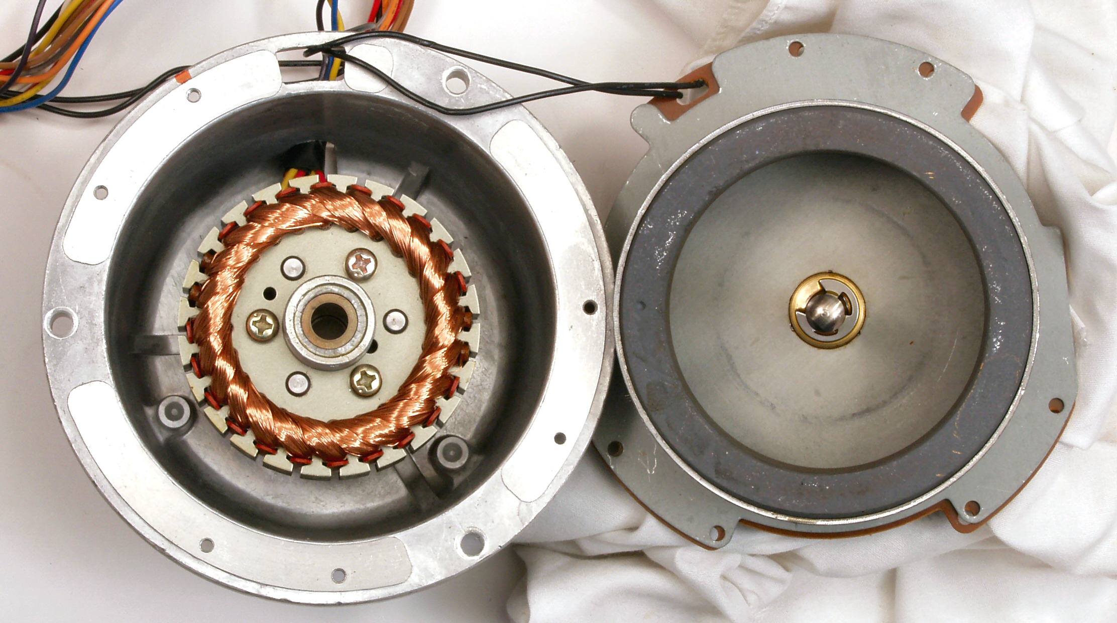 | C21. 修理中 モーターを分解・清掃・給油。 左=固定子、右=アウターロータ | ||||||||||||||||||||||||||||