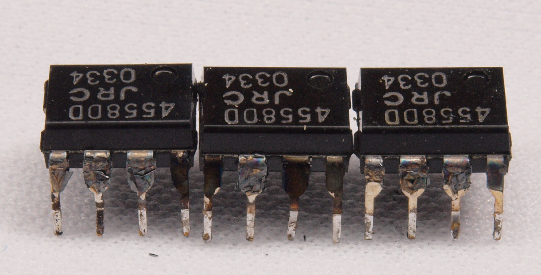 | C73. 交換部品。 足(端子)が炭化したOP-AMP、反対側。 | ||||||||||||||||||||||||||||