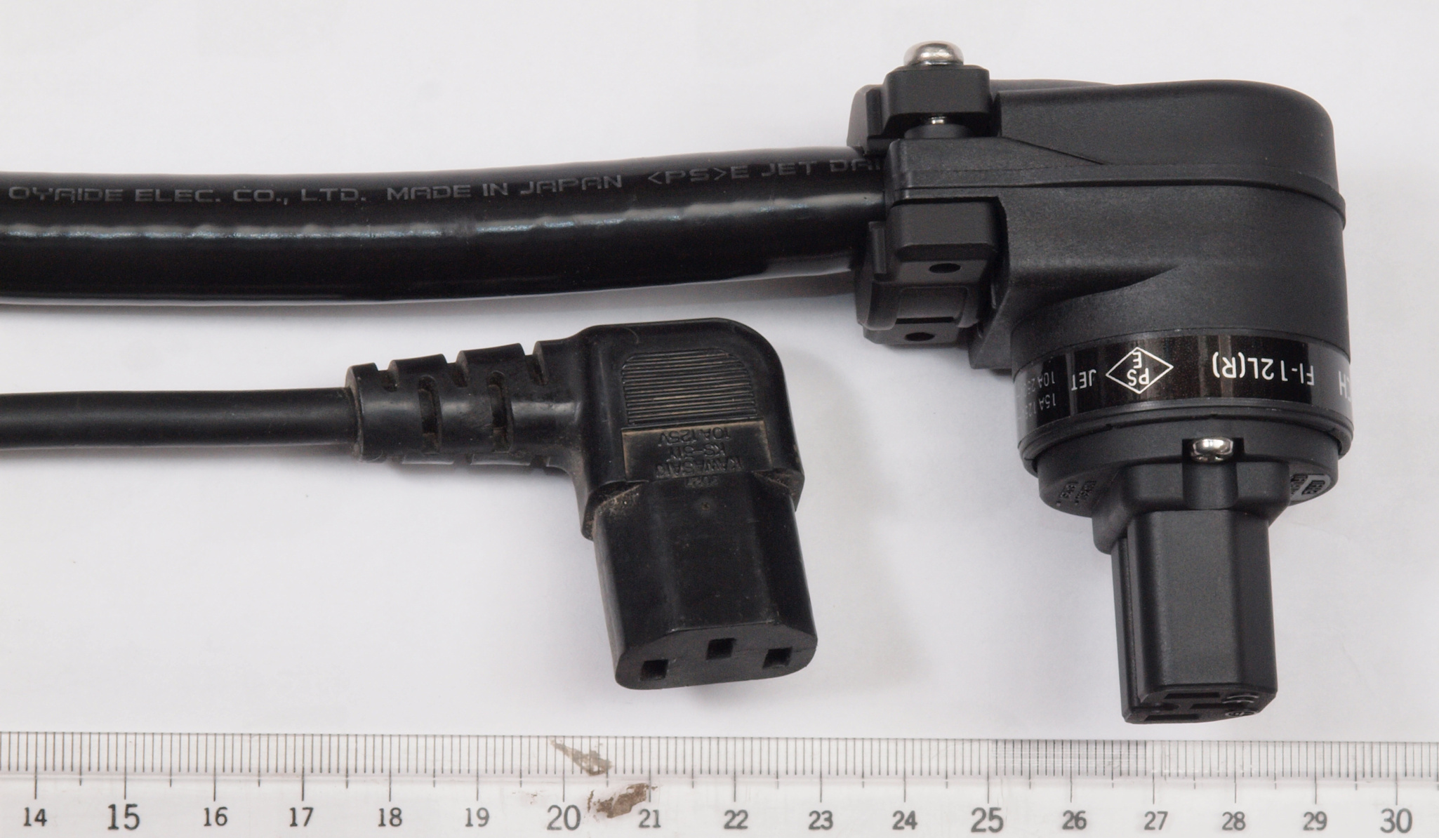 D7. 電源コード製作。L型プラグFURUTECHFI−12Lに接続中。
