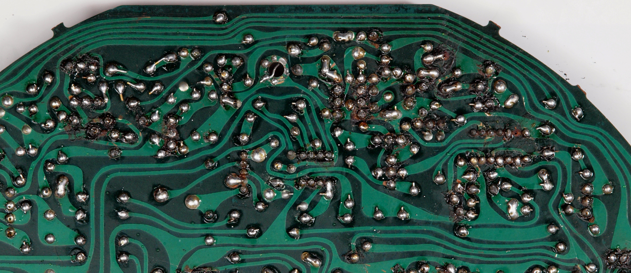 C14. 修理(半田補正)後 基板裏。 半田を全部やり直す。