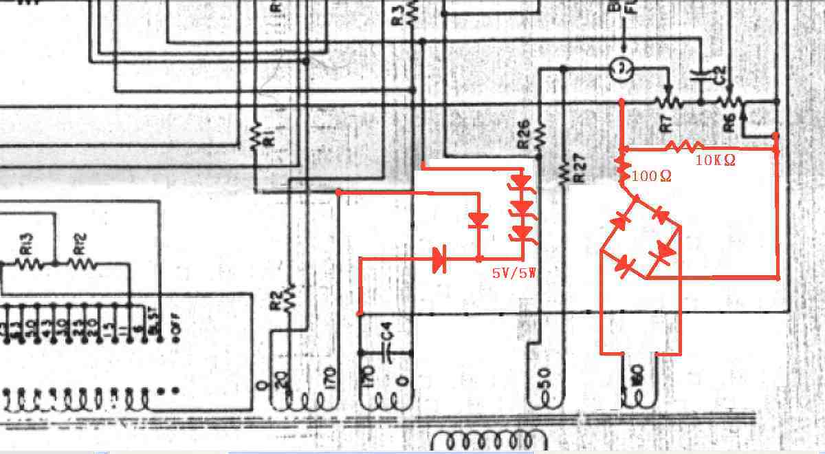 整流管83・5Y3GTをダイオードに単純に交換すると、電源が強化する事になり、相互コンダクタンス(conductance)の測定には信頼性(精度)が増すことになります。 しかし、チャートの「Aver.Mut.Cond.」とは誤差がでます。又、他の試験方法にも誤差がでます。よって、回路の変更、全体的な調整・校正が必要となります。