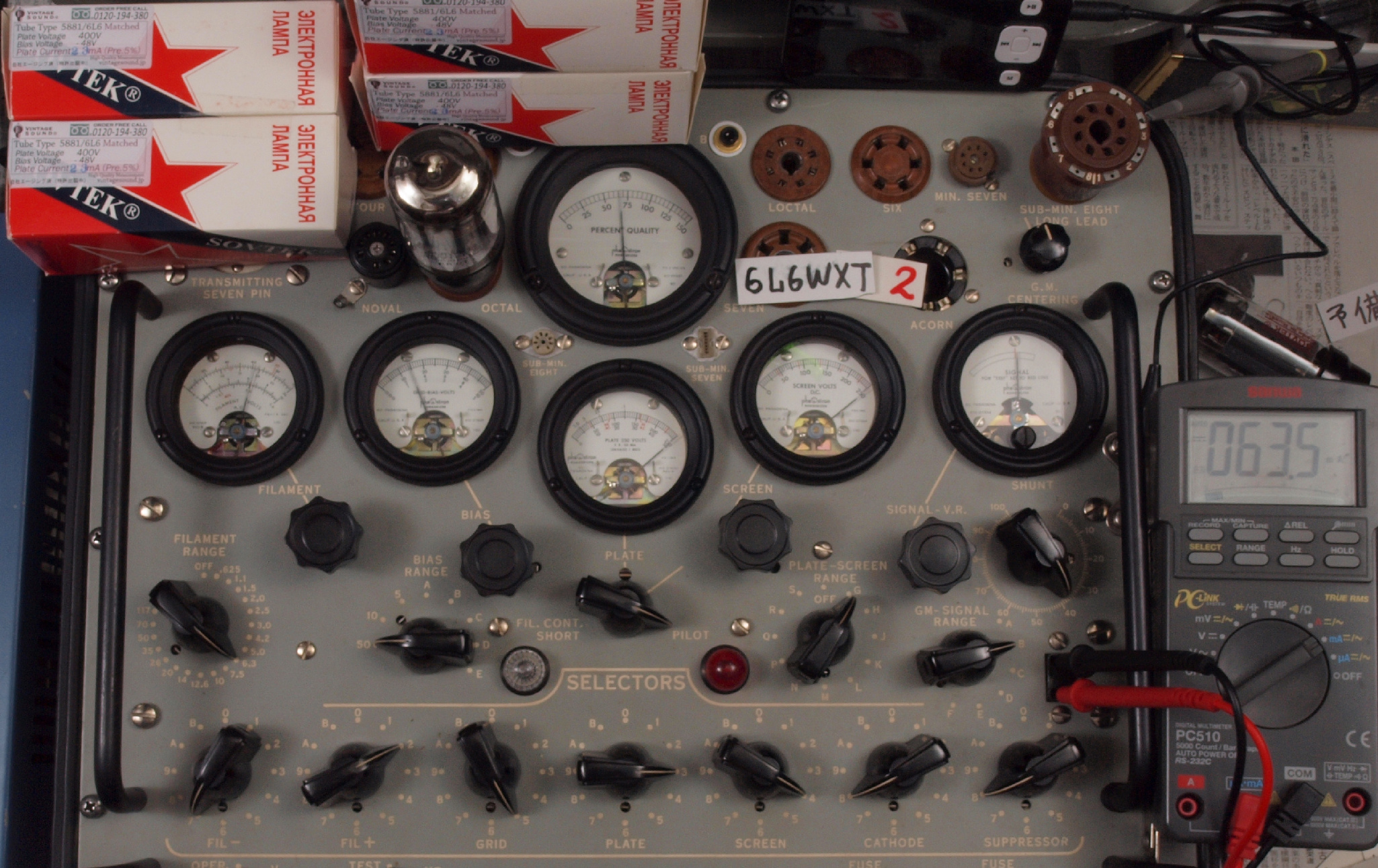2本目 6L6WXT 測定。 Gm=6500μmho、Ip=63.5mA。