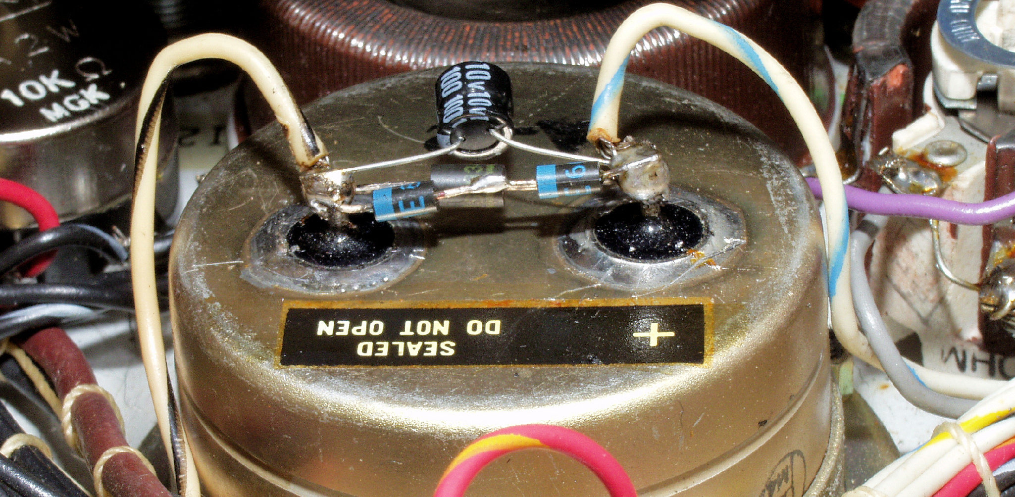 スクリーン電圧電解コンデンサーの配線修理(−、+逆)