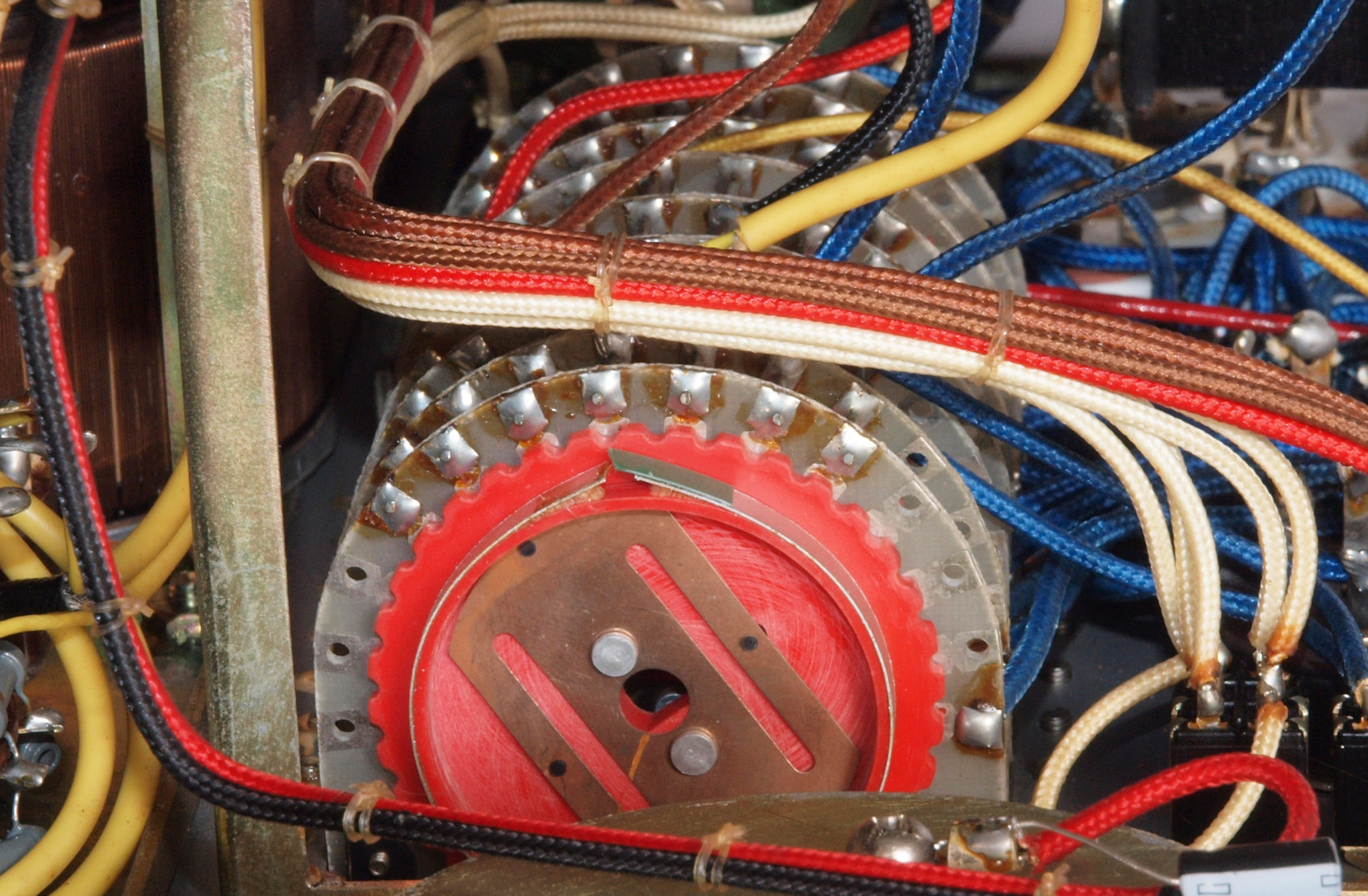 | E7. 真空管ピン選択ホイール横から見る、反対側。特殊な構造。カシメのアルミピンが見える。 | |||||||||||||||||||||||||||||||||||