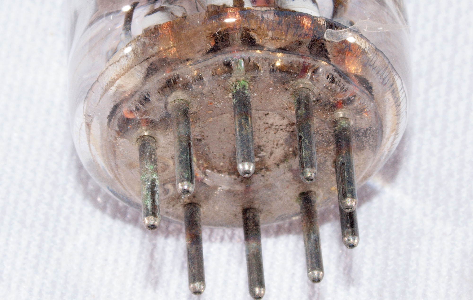 | G95. 空気管になった「真空管」、足に緑青が発生している。 |