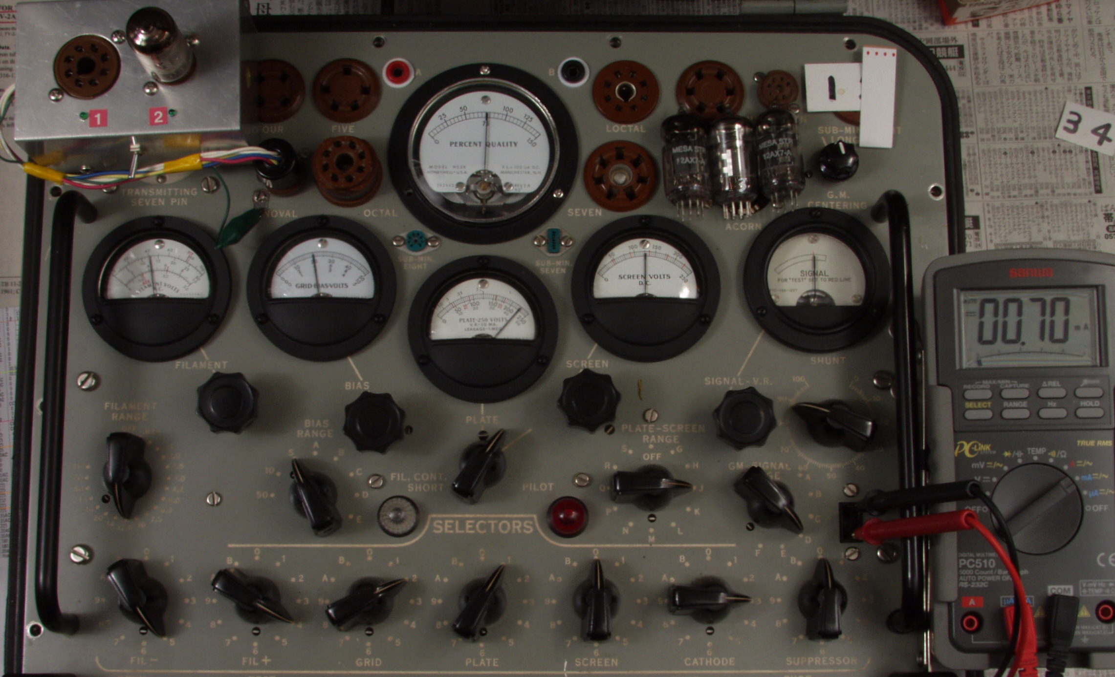 | CB31. SOVTEC 12AX7LP、3本目ユニット1測定。 Gm=2100μmho、IP=1.4mA。 Cレンジ=3000μmhoレンジ、「Ep=225V、Eg1=−2V」。 |