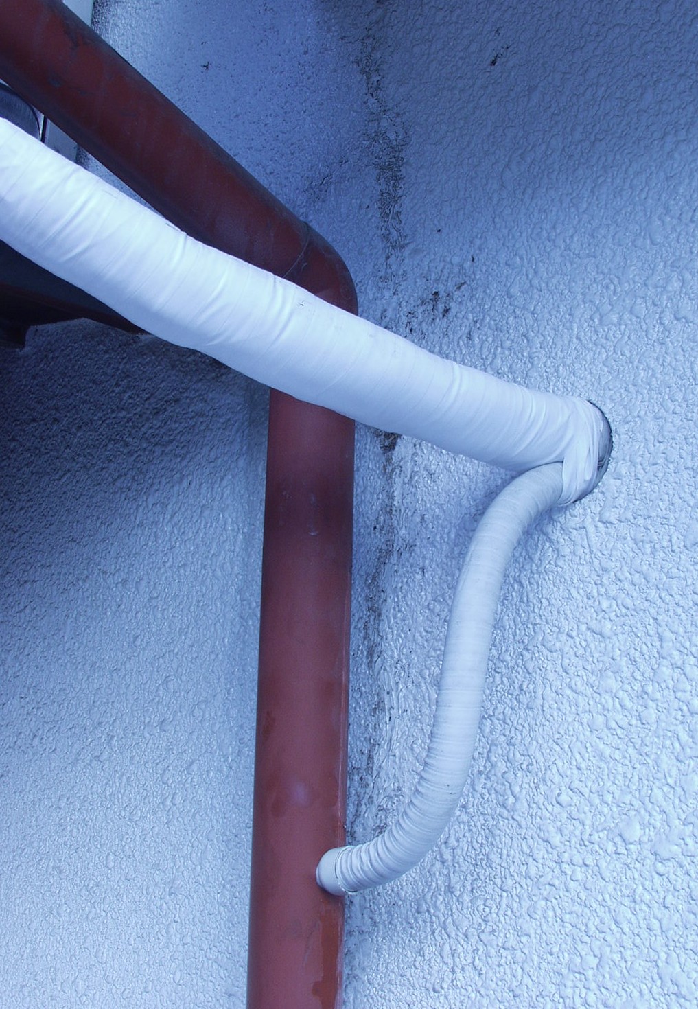 | 25.ドレインの配管は雨樋にジョイント 壁穴へのコンパウンドは後で入れる(在庫が見つからない) |