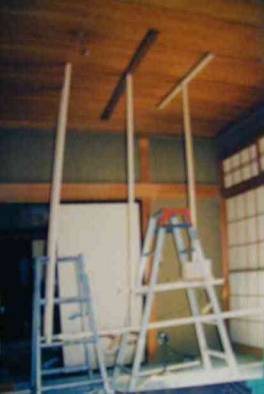 5.天井裏に入るので、下から補強している所