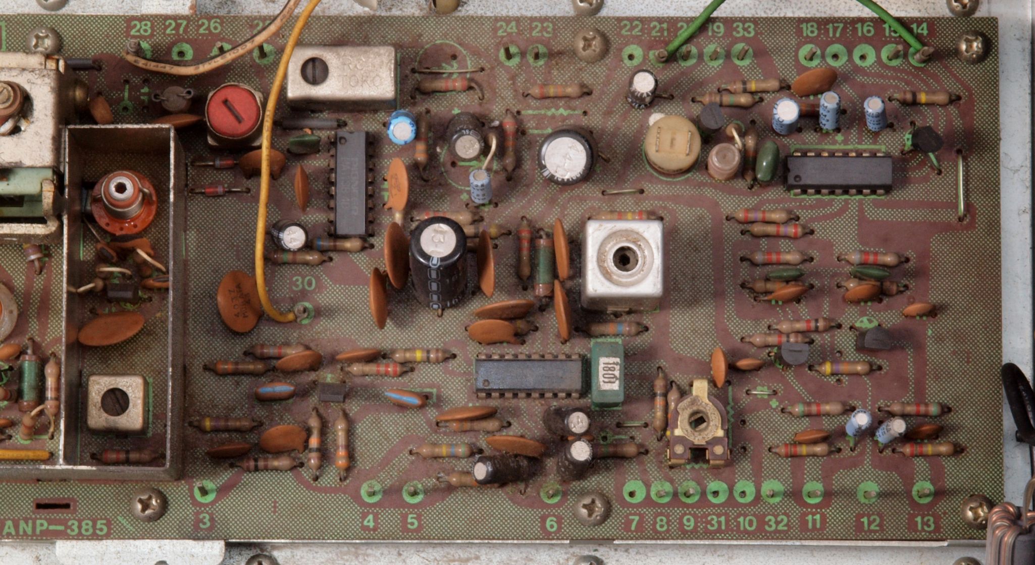 C42. 修理後 コントロール基板。電解コンデンサー13個、TR(トランジスター)6個交換。