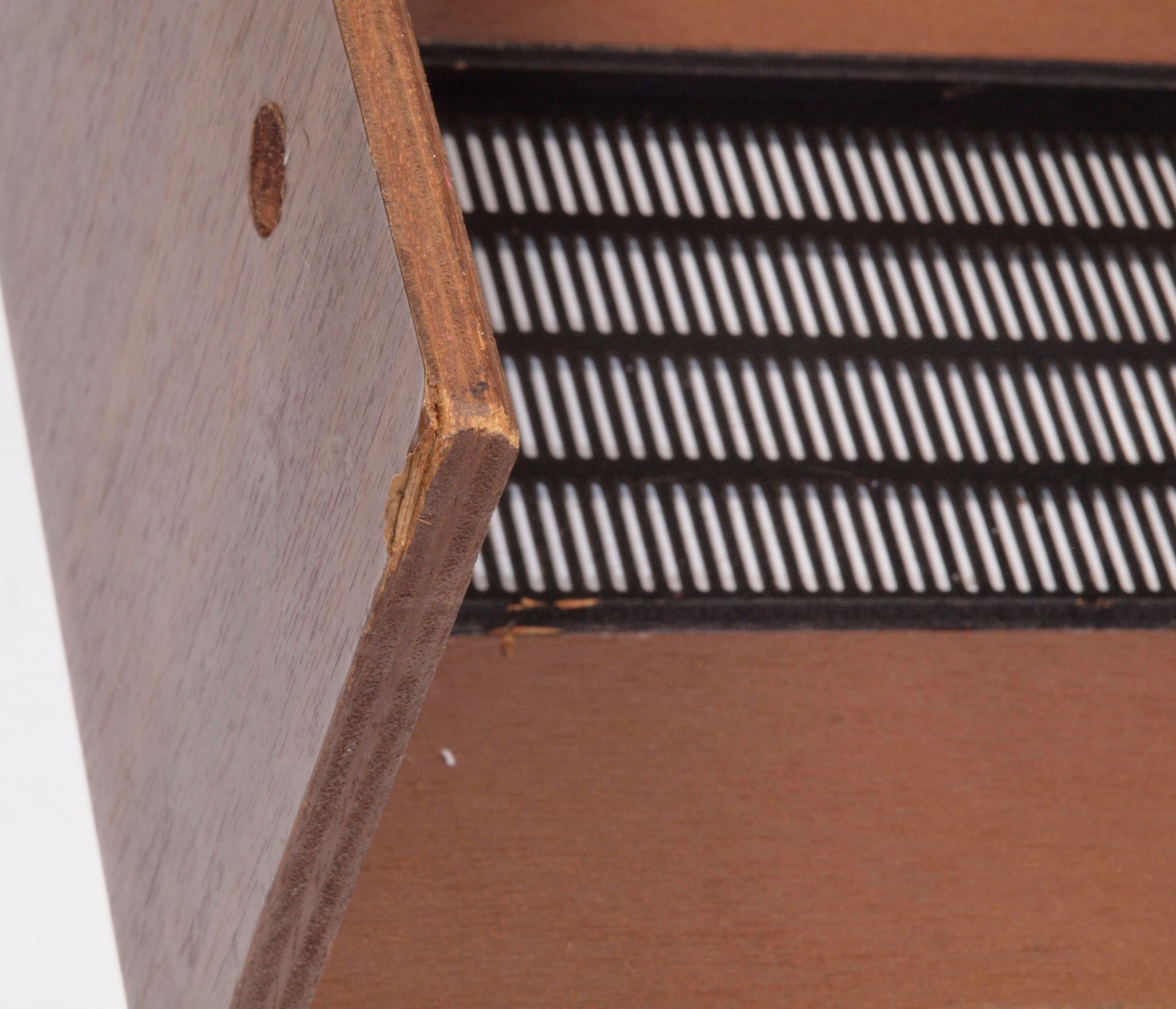 A27. 点検中 木ケース。 後ろ左下の割れ、拡大。