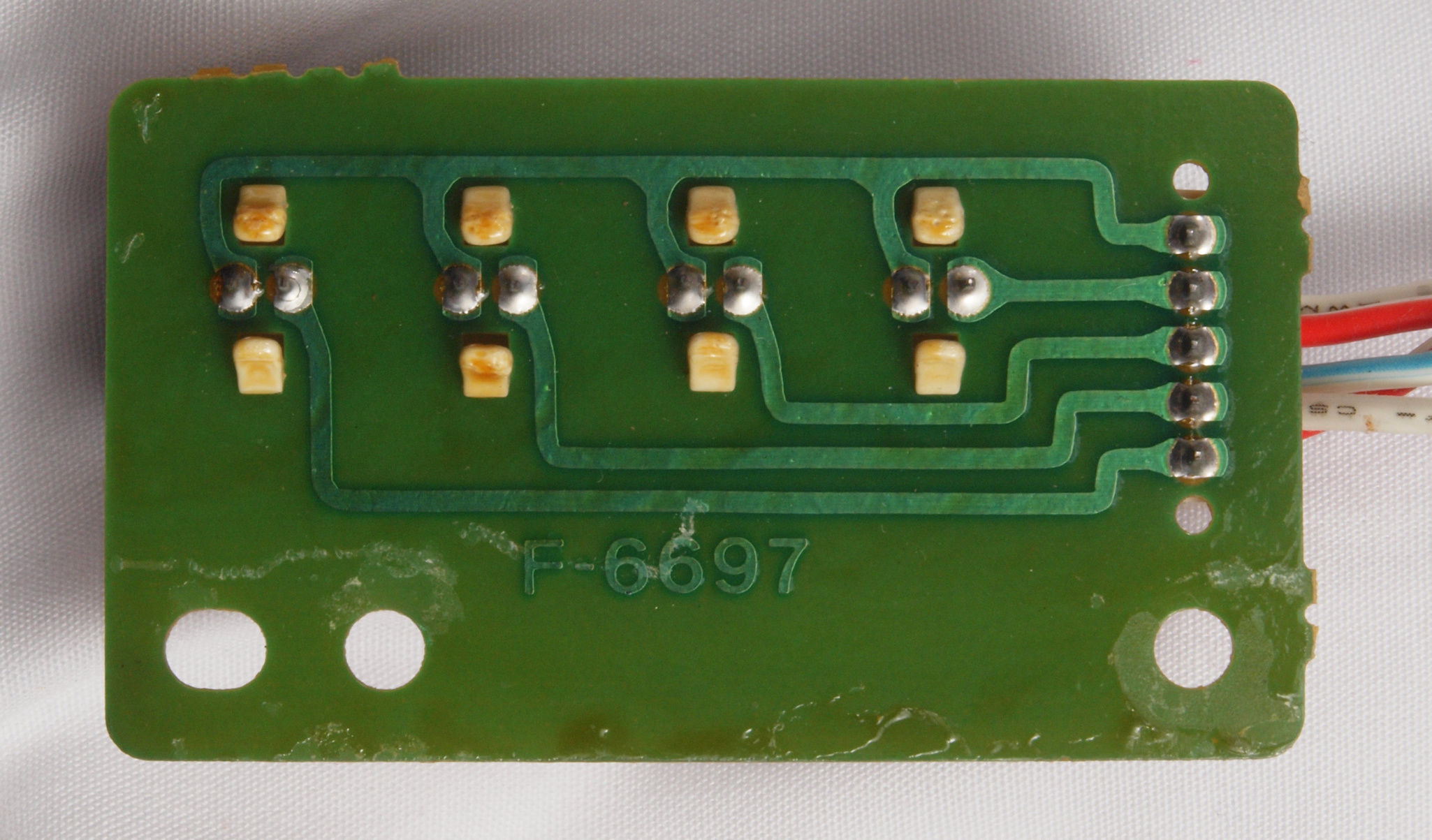 | C637. 修理後 L側ドライブ基板裏。 ドライブTR(トランジスター)の足の銅箔を広げる2。 | ||||||||||||||||||||||||||||||||||||||||||||||||||||
