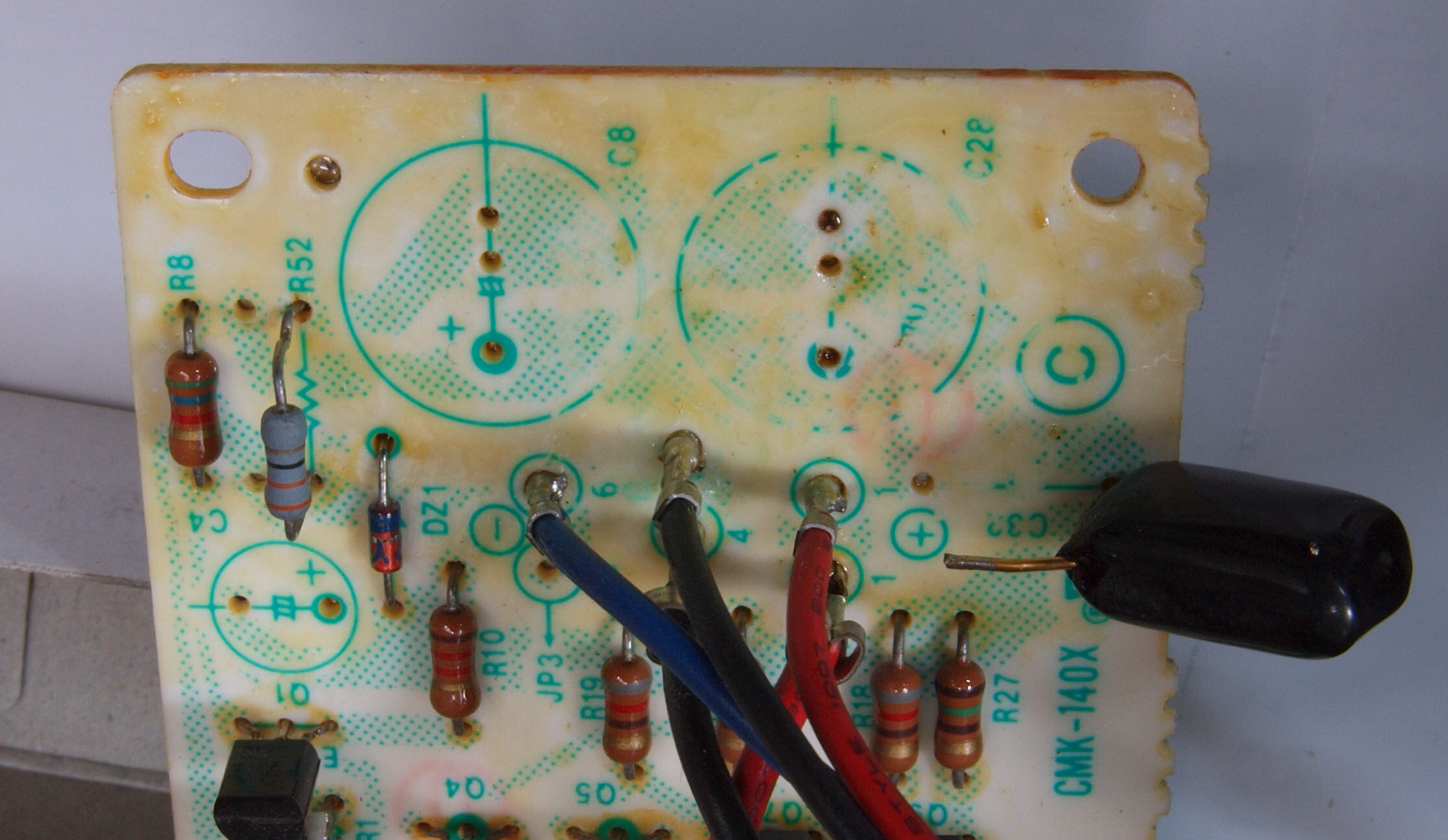 | C54. 修理(半田補正)後 コントロール基板裏、セラミックコンデンサー2個、抵抗2個追加。 | ||||||||||||||||||||||||||||||||||||||||||||||||