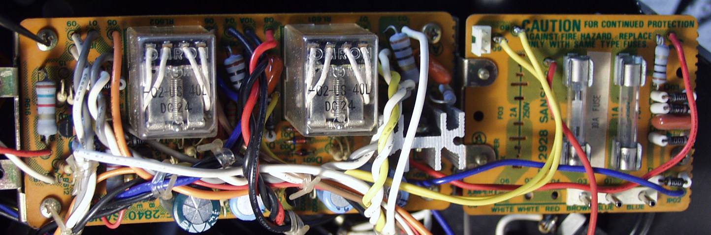| CE2. 修理後 SP接続リレー・プロテクト基盤 SP接続リレー2個、電解コンデンサー6個交換 | ||||||||||||||||||||||||||||||||||||||||||||||||||||||||||||||||||||||||