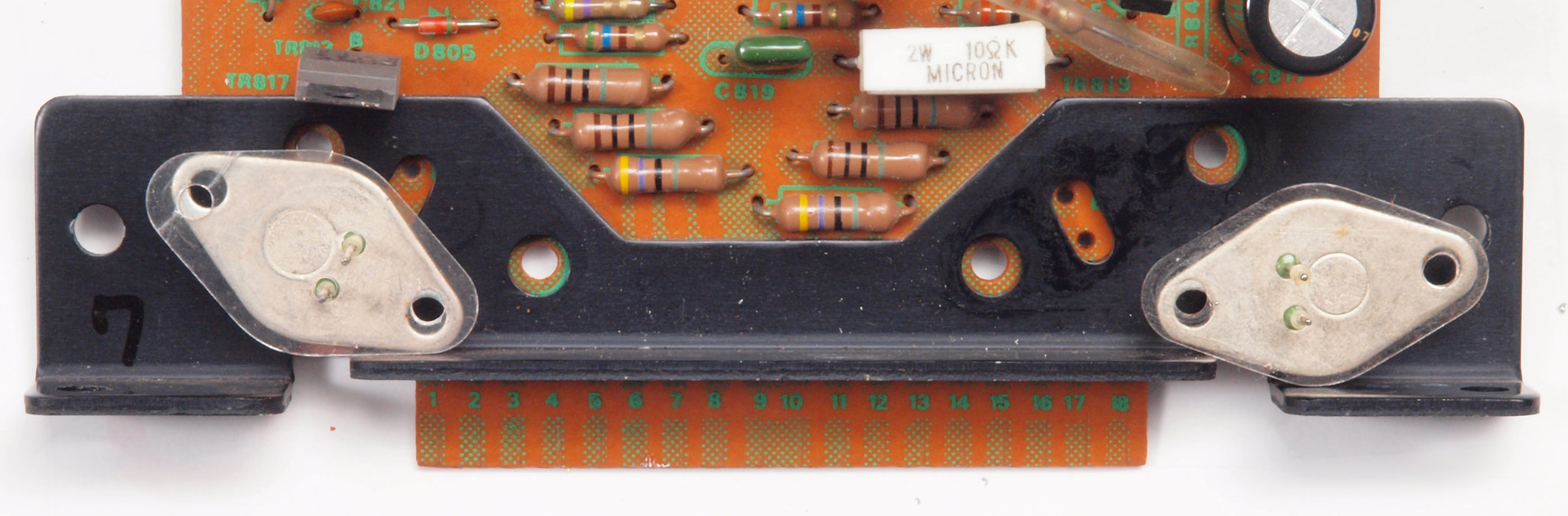 | C31. 修理前 L側終段基板。 TR(トランジスター)が2個交換されている。 | ||||||||||||||||||||||||||||||||||||||||||