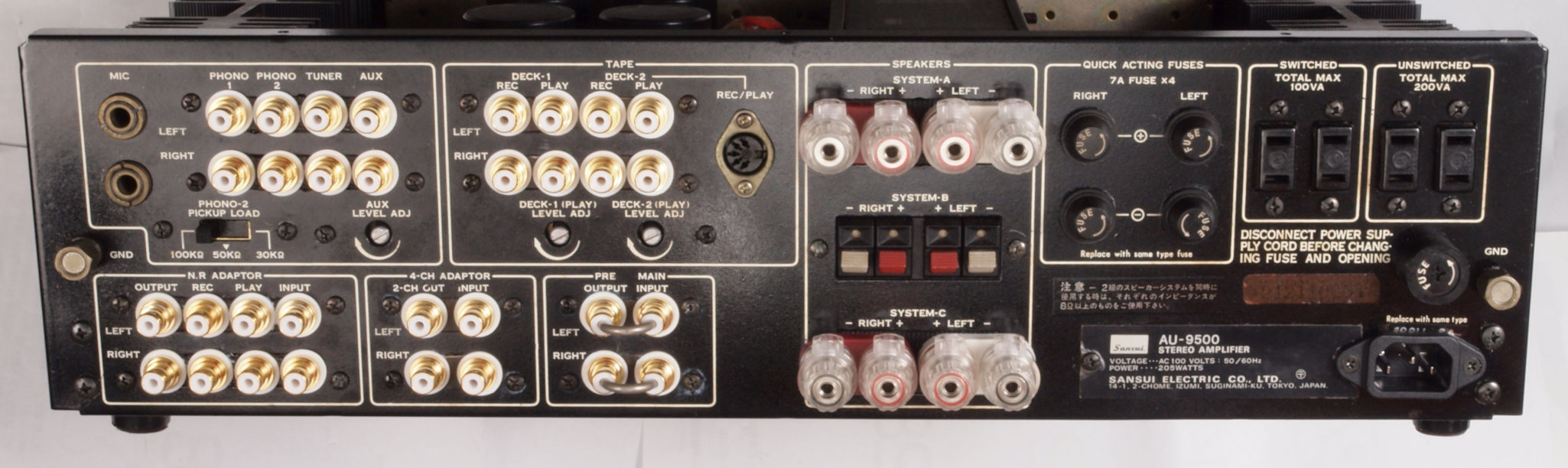 | S. SANSUI AU−9500 の仕様(マニアル・カタログより) | ||||||||||||||||||||||||||||||||||||||||||