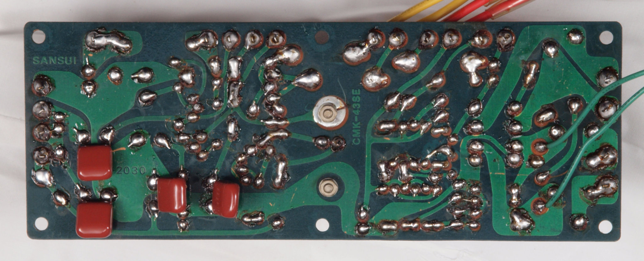 | C61. 修理前 EQ−AMP基板。 TR(トランジスター)が2個交換されている。 | ||||||||||||||||||||||||||||||||||||||||||