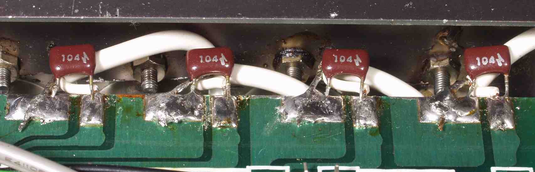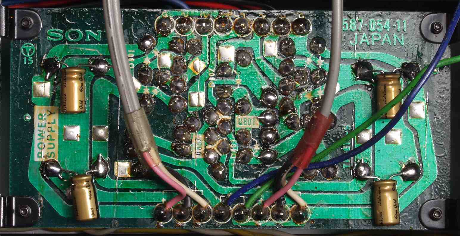 | C24. 修理(半田補正)後 電源基板裏。 半田を全部やり直す、普通はこれで完成。 電解コンデンサー4個追加。 | ||||||||||||||||||||||||||||||||||||