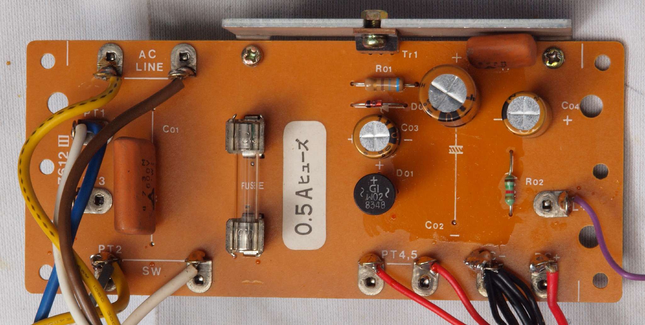 | C212. 修理中 電源・フューズ基板。 トルエン溶媒の接着剤。 | ||||||||||||||||||||