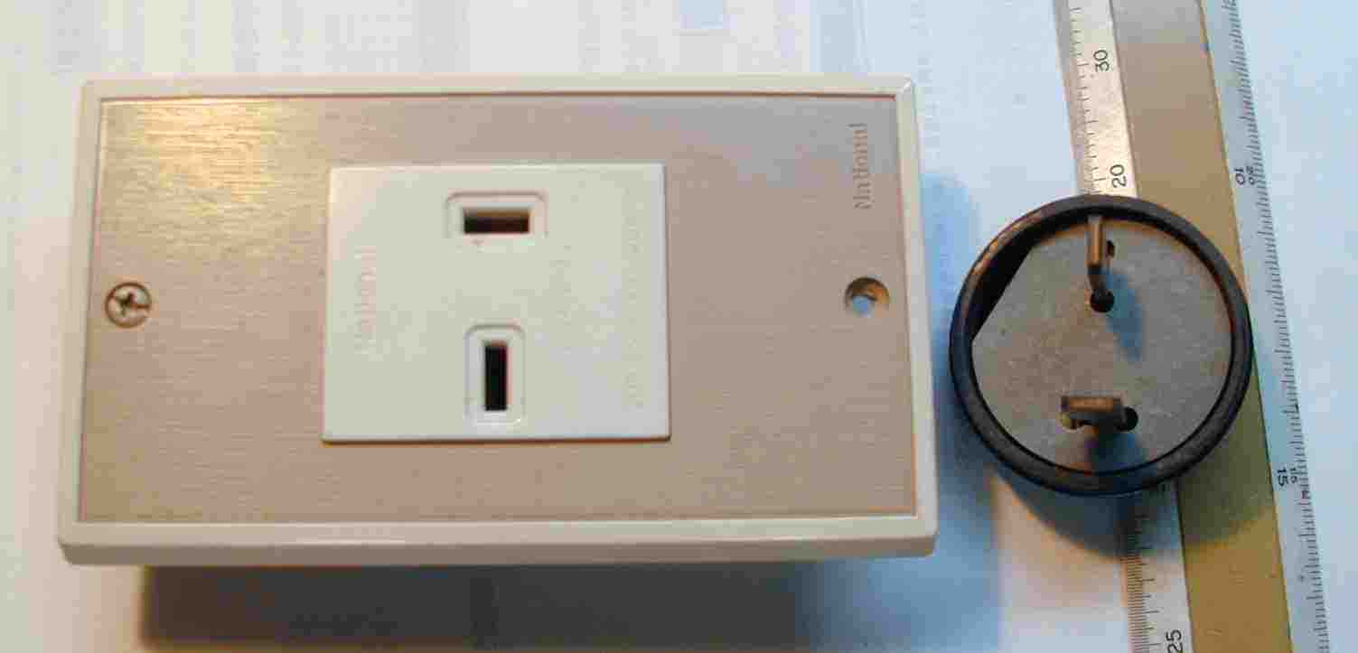 | 32. 簡単に効能を知るには、「3Pインレット」に交換しコードを交換してみる。 下は、「3Pインレット」に交換した物。 詳細はこちら参照 但し、交換すると、インレットの接触抵抗が増すので注意 |