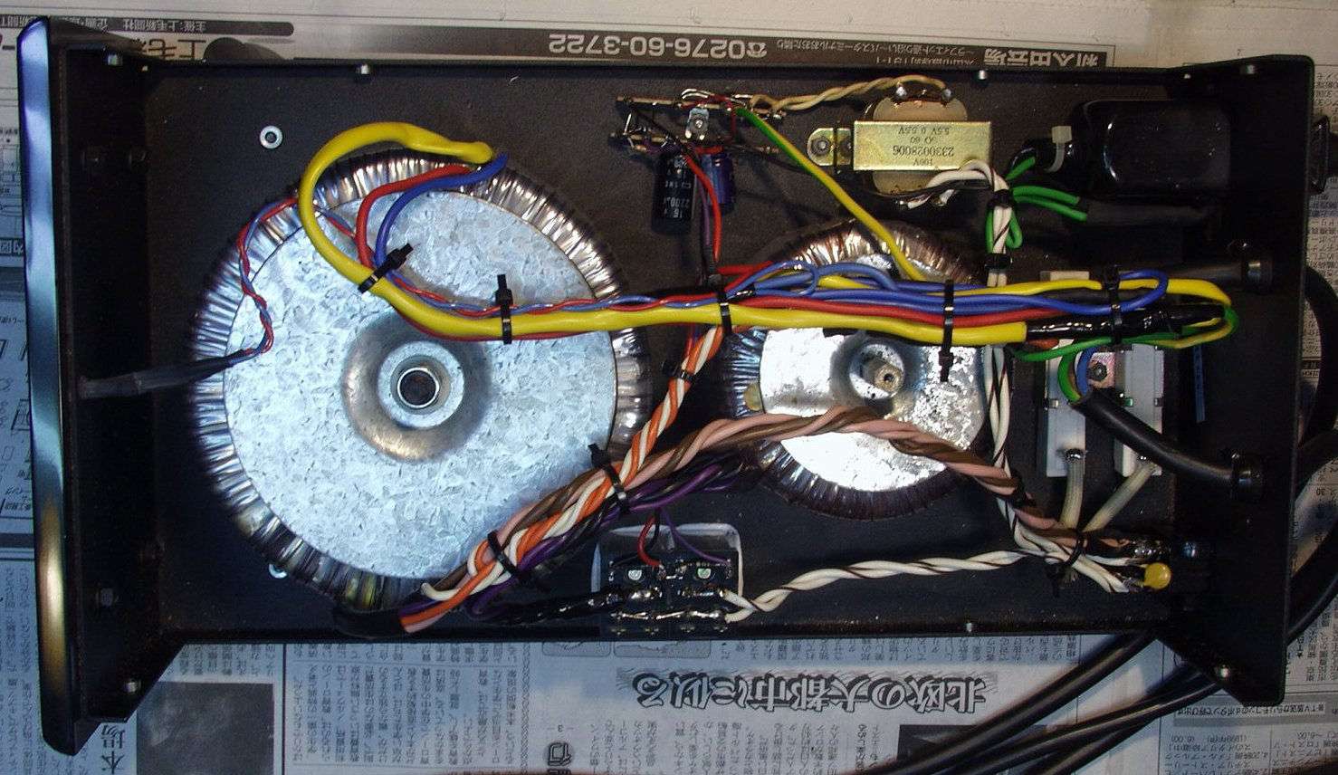 | 11. 絹使用の太いコードに取り替えられた真空管AMP(上杉 UTY−5)の例 |