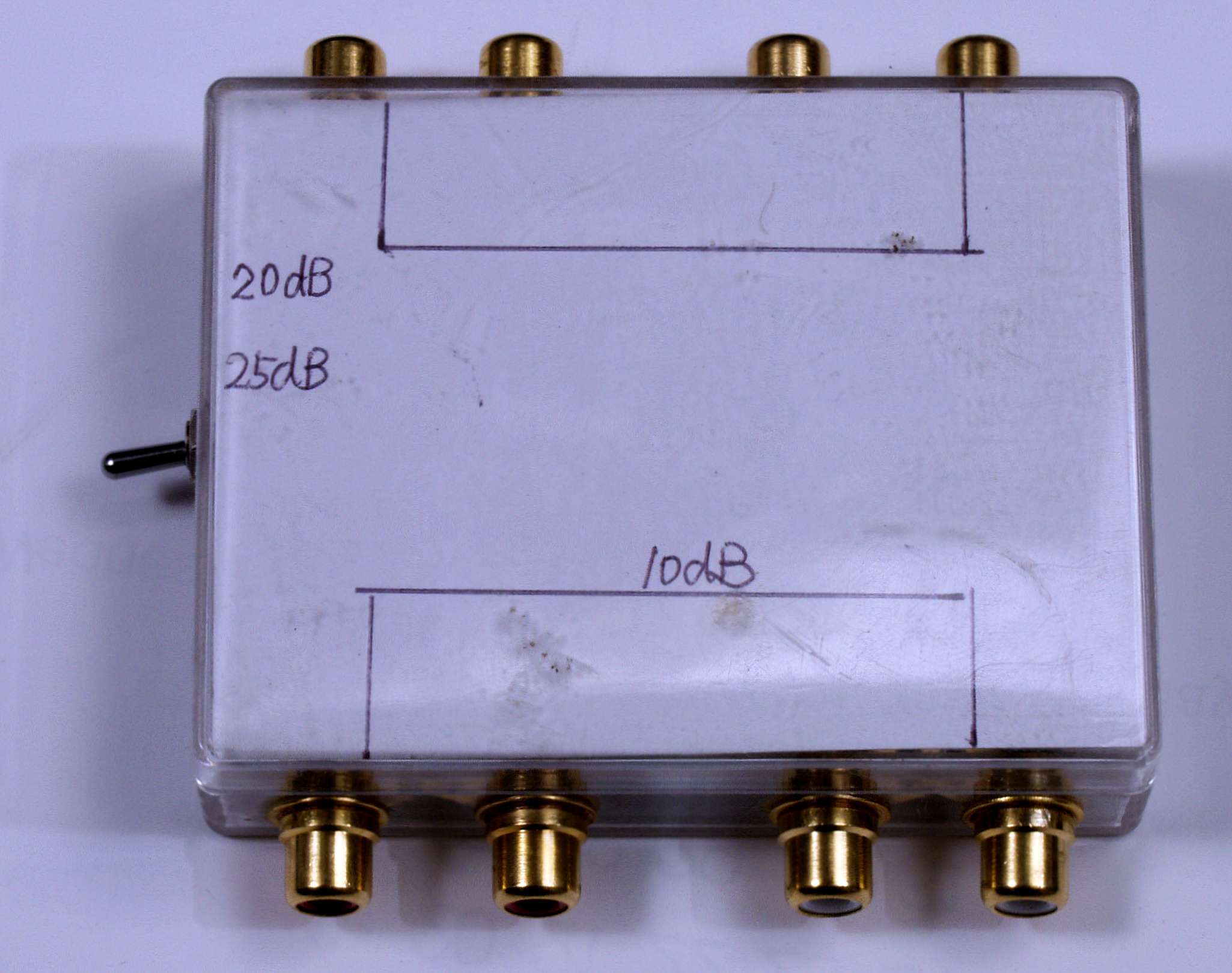 | 64. 2回路を組み込んだ物。 インピーダンス50KΩ、約20dB(10分の1)減衰。 |