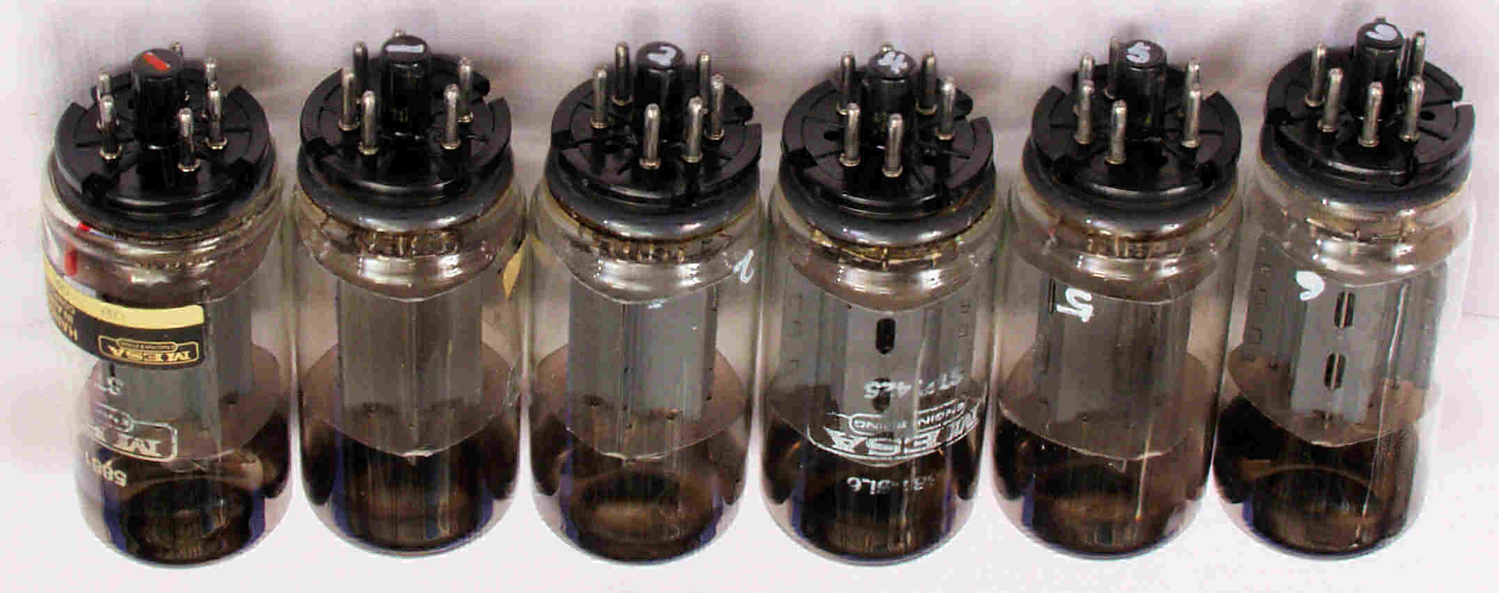 | CB3. 新品購入出力真空管SOVTEC 「5881=6L6WGC」。 左上から1本目....6本目。 |