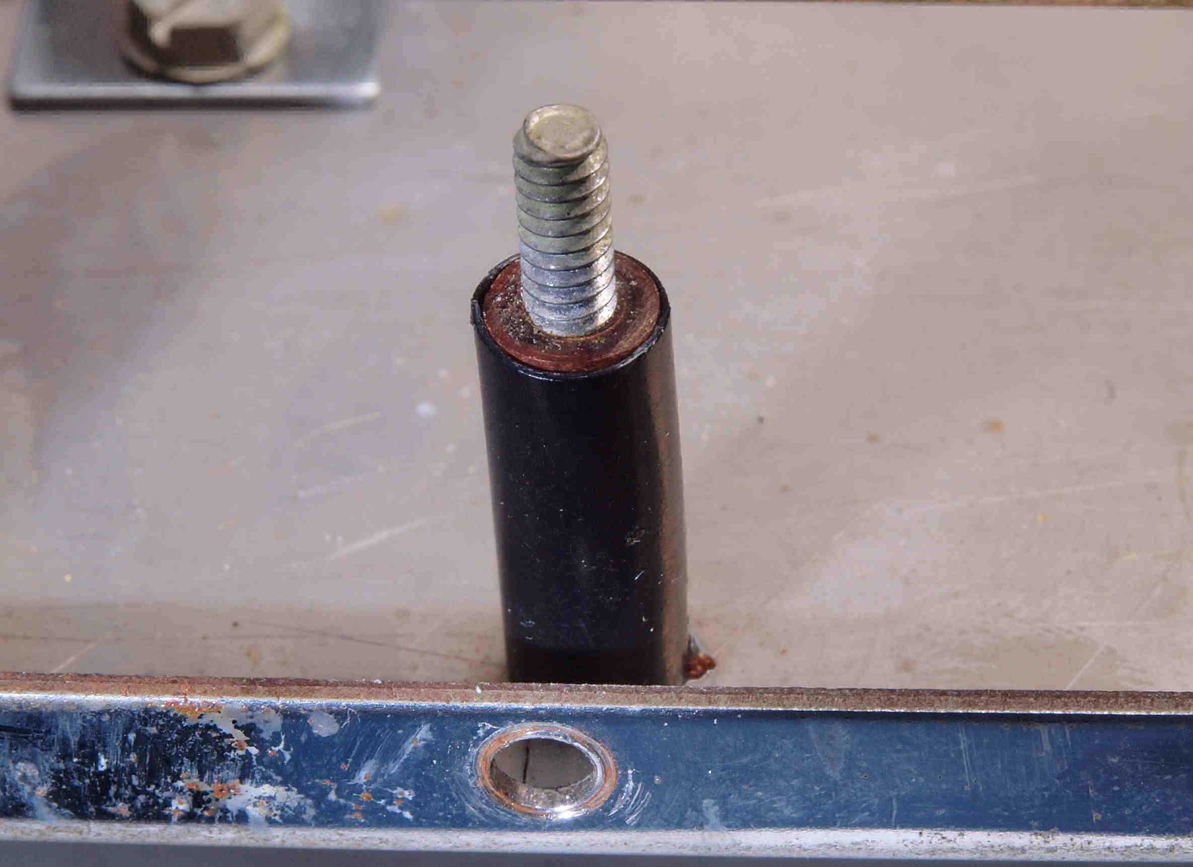 C613. 修理中 出力AMP基板、 スペンサーを接着し且つ熱収縮チューブで固定する。