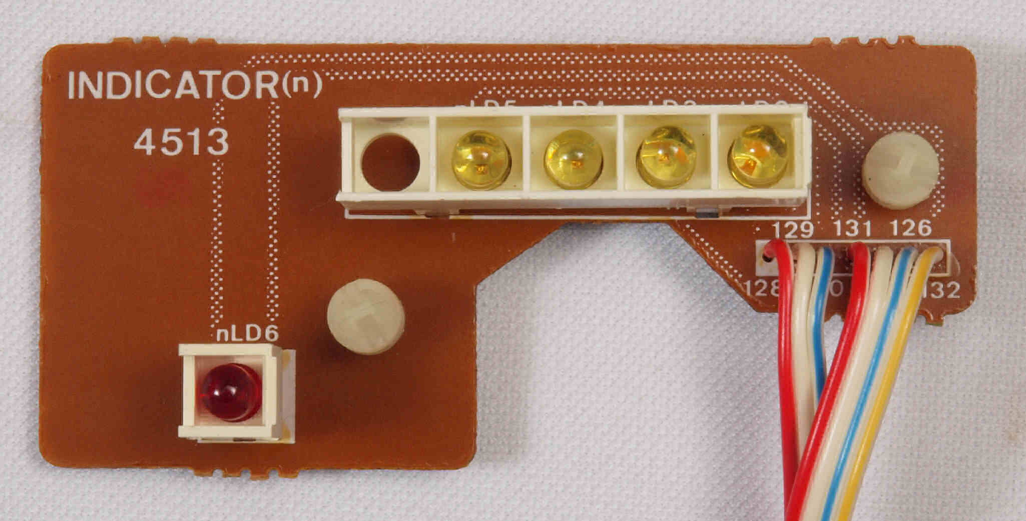 C71. 点検中 入力切り換えSWの表示比較(正面)。 左2個=付いていたマメ球、右2個=交換するLED。