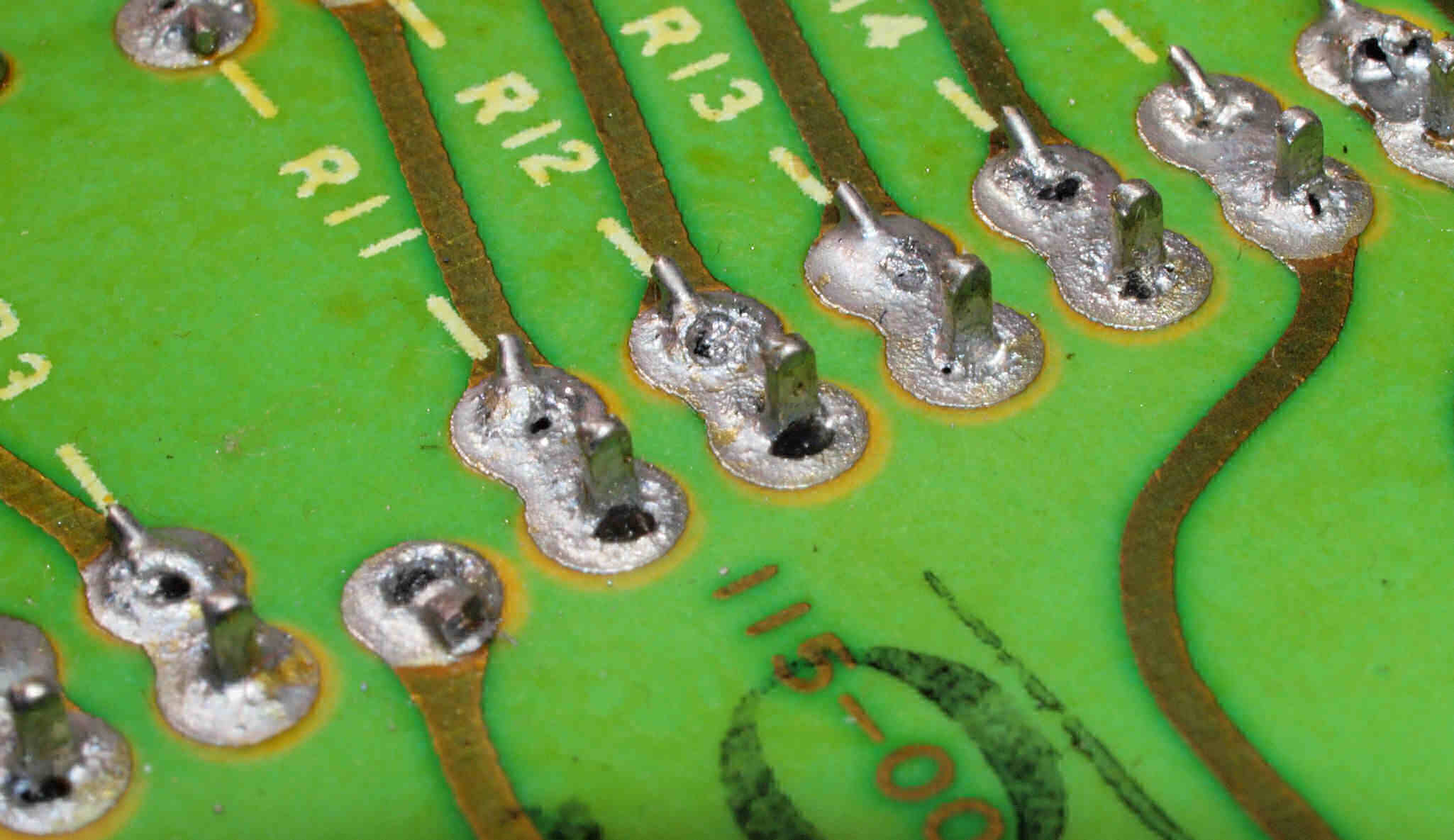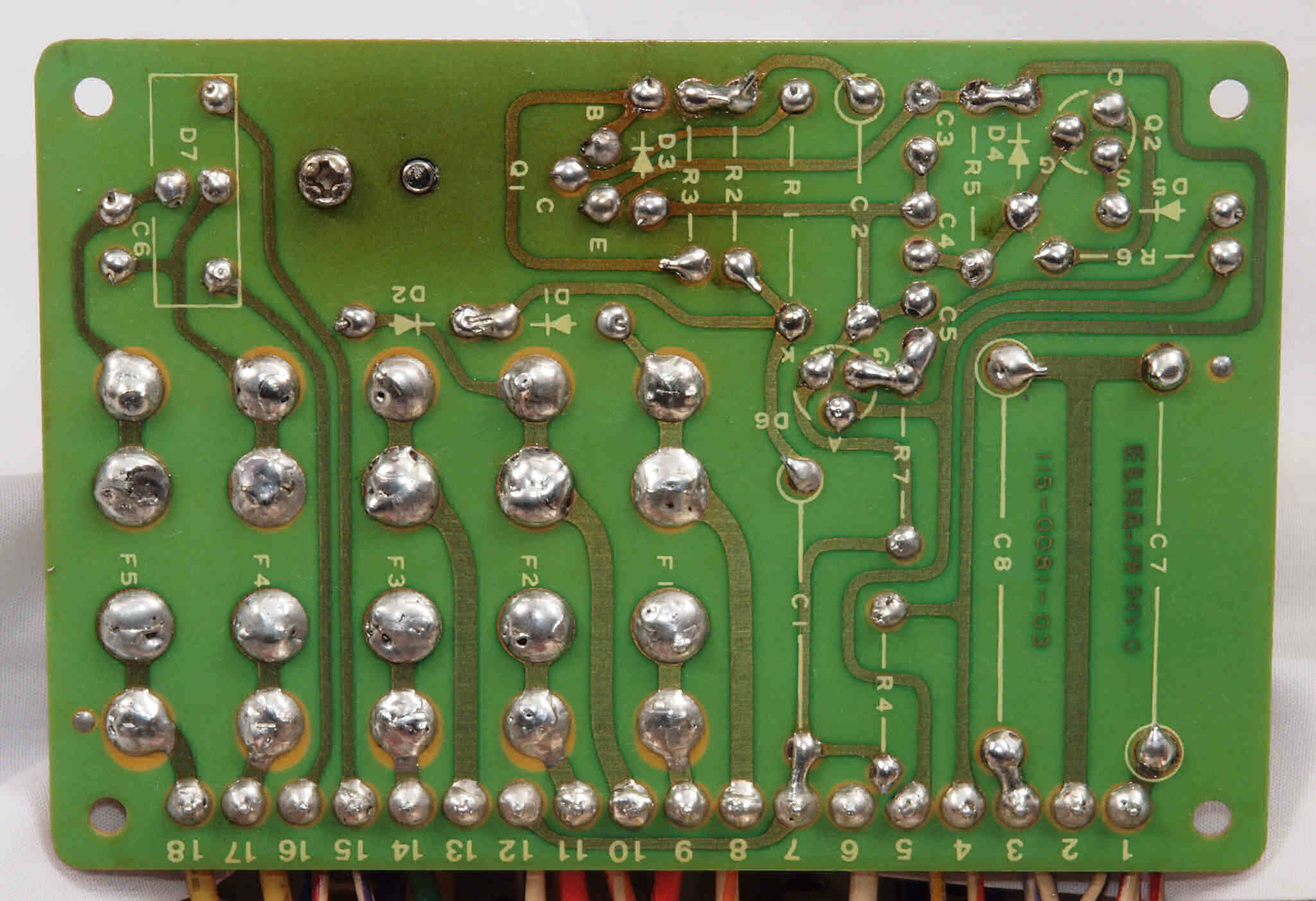 C14. 修理(半田補正)後 R側EQ_AMP基板裏。 半田を全部やり直す。