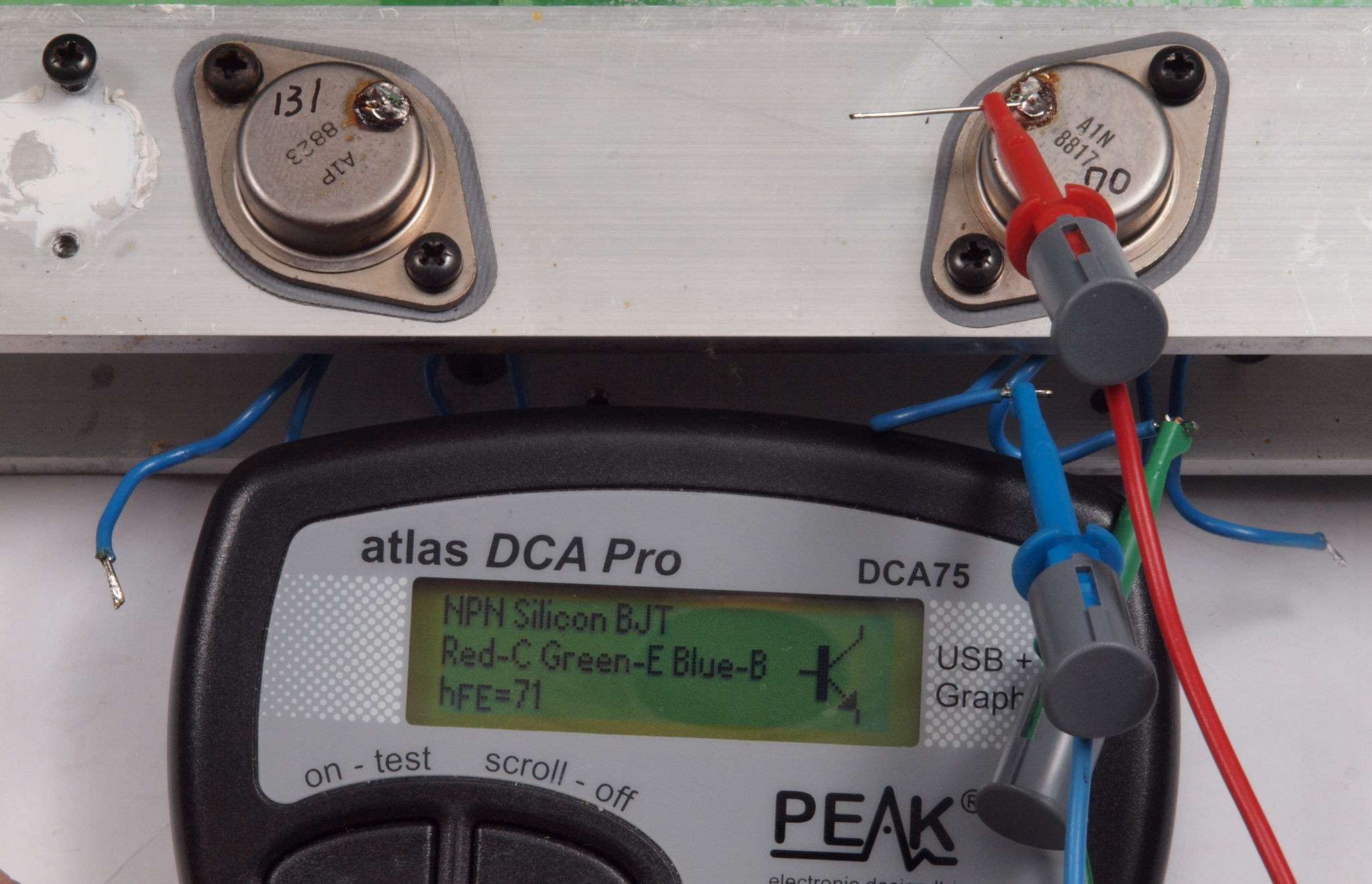 T2. 修理中 R側終段TR(トランジスター)測定、hfe=131,70