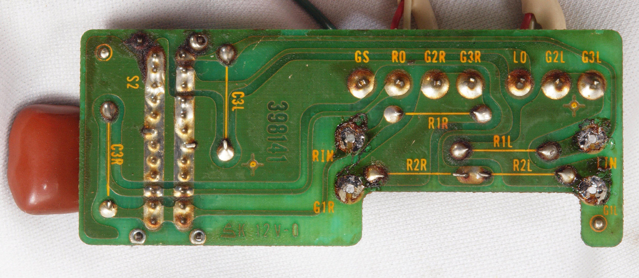 | C15. 修理(半田補正)後 R側ドライブ基板裏 半田を全部やり直す。 普通はこれで完成。 |