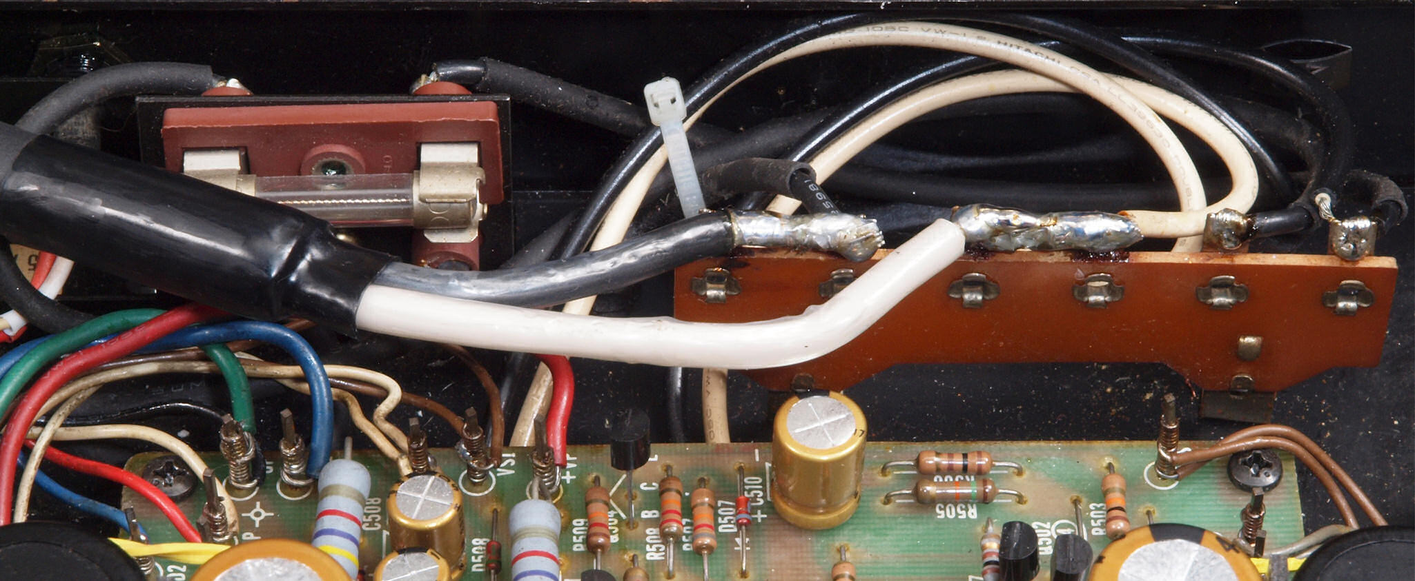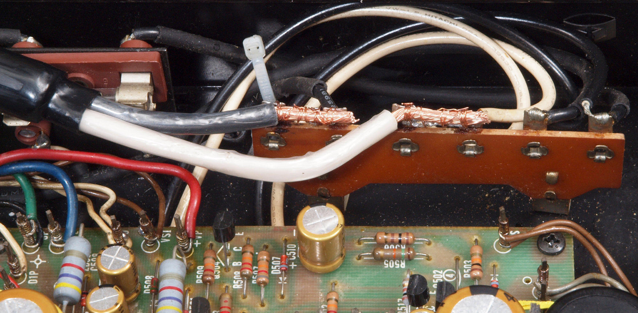 | CC5. 修理前 R側ドライブ基板−電源基板へのラッピング線。 |